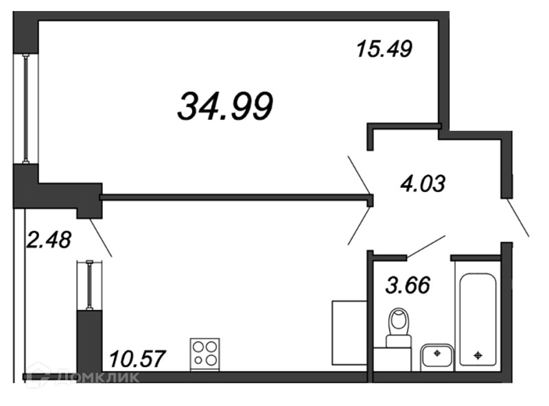 Общая площадь 34.99 м2