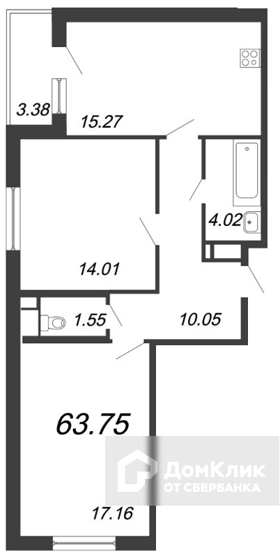 Общая площадь 63.9 м2