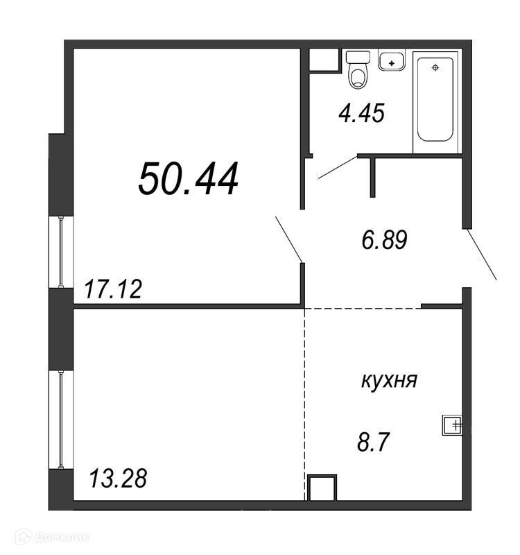 Общая площадь 50.9 м2