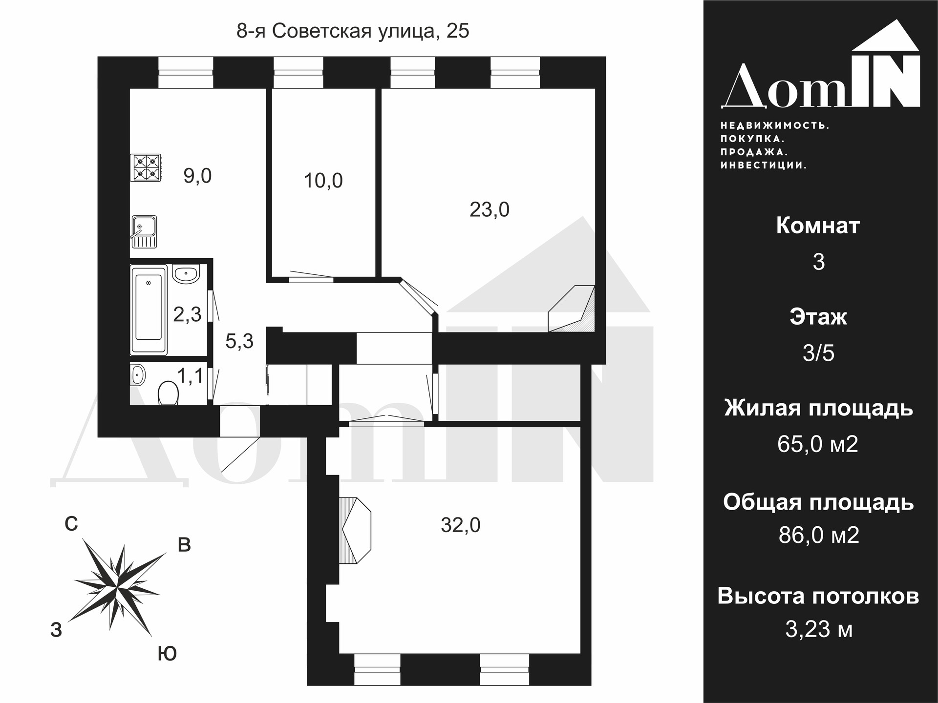Общая площадь 86 м2