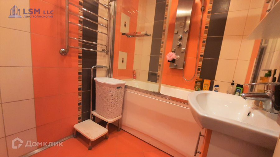 На лестничной площадке у входа в квартиру стоит шкаф и встроены две большие кладовки. Санузел раздельный, большая ванная комната 4,5 м2