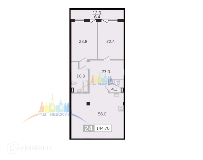 3-комнатная квартира, 142 м2, этаж 9 / 10, на продажу в Санкт-Петербурге, улица Грота, 1-3В