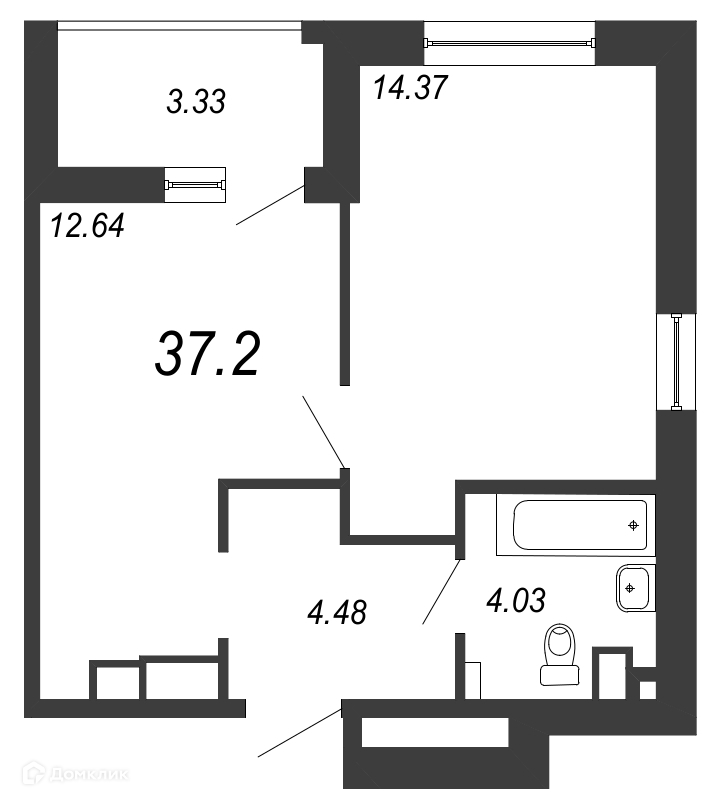 Общая площадь 37.2 м2