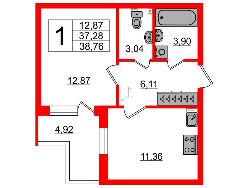 Общая площадь 36 м2
