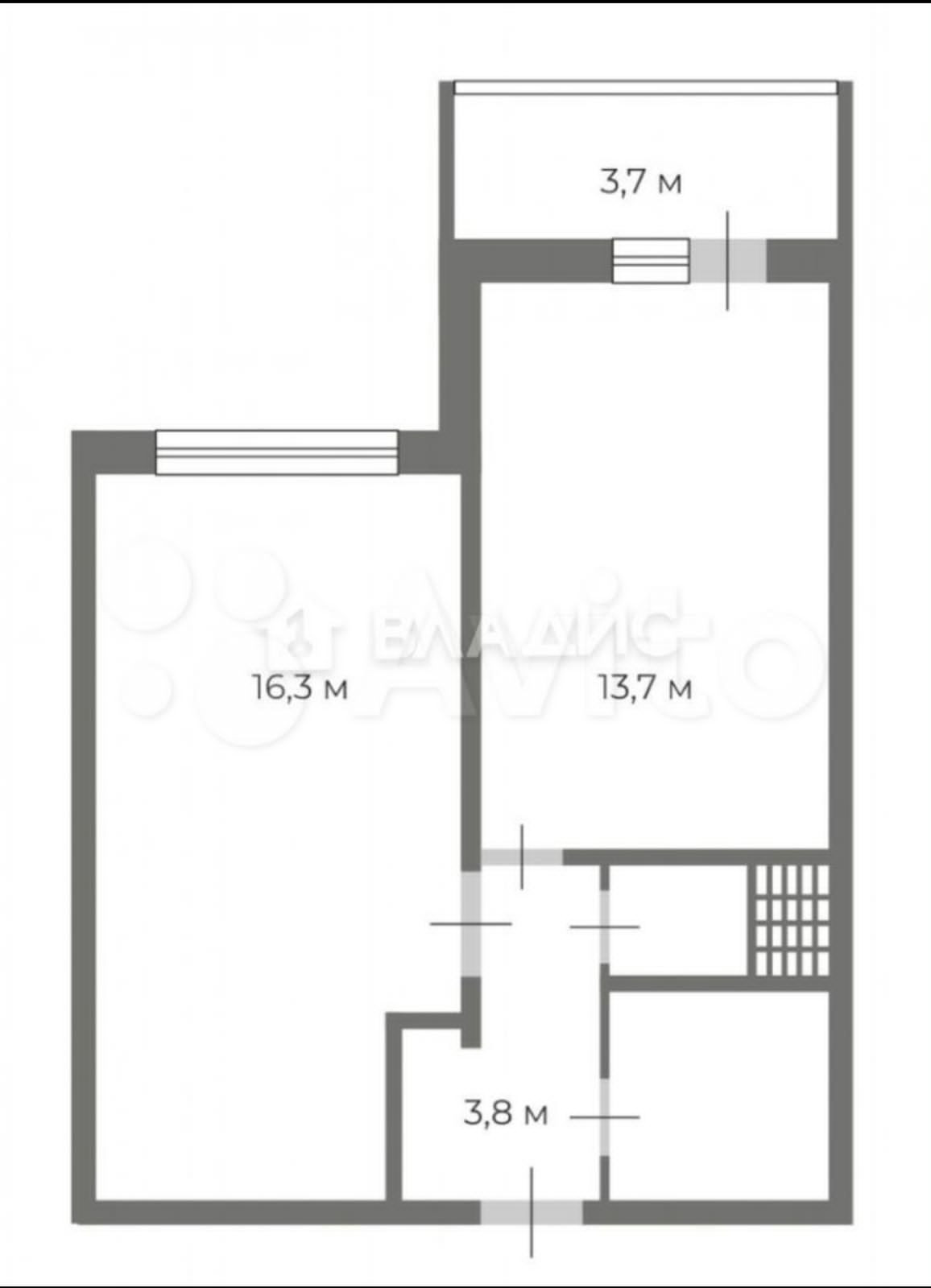 Жилая площадь 16.3 м2