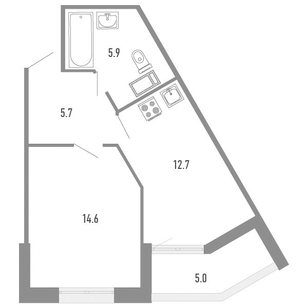 1-комнатная квартира, 41 м2, этаж 8 / 17, на продажу в Санкт-Петербурге, Вилькицкий бульвар, 7