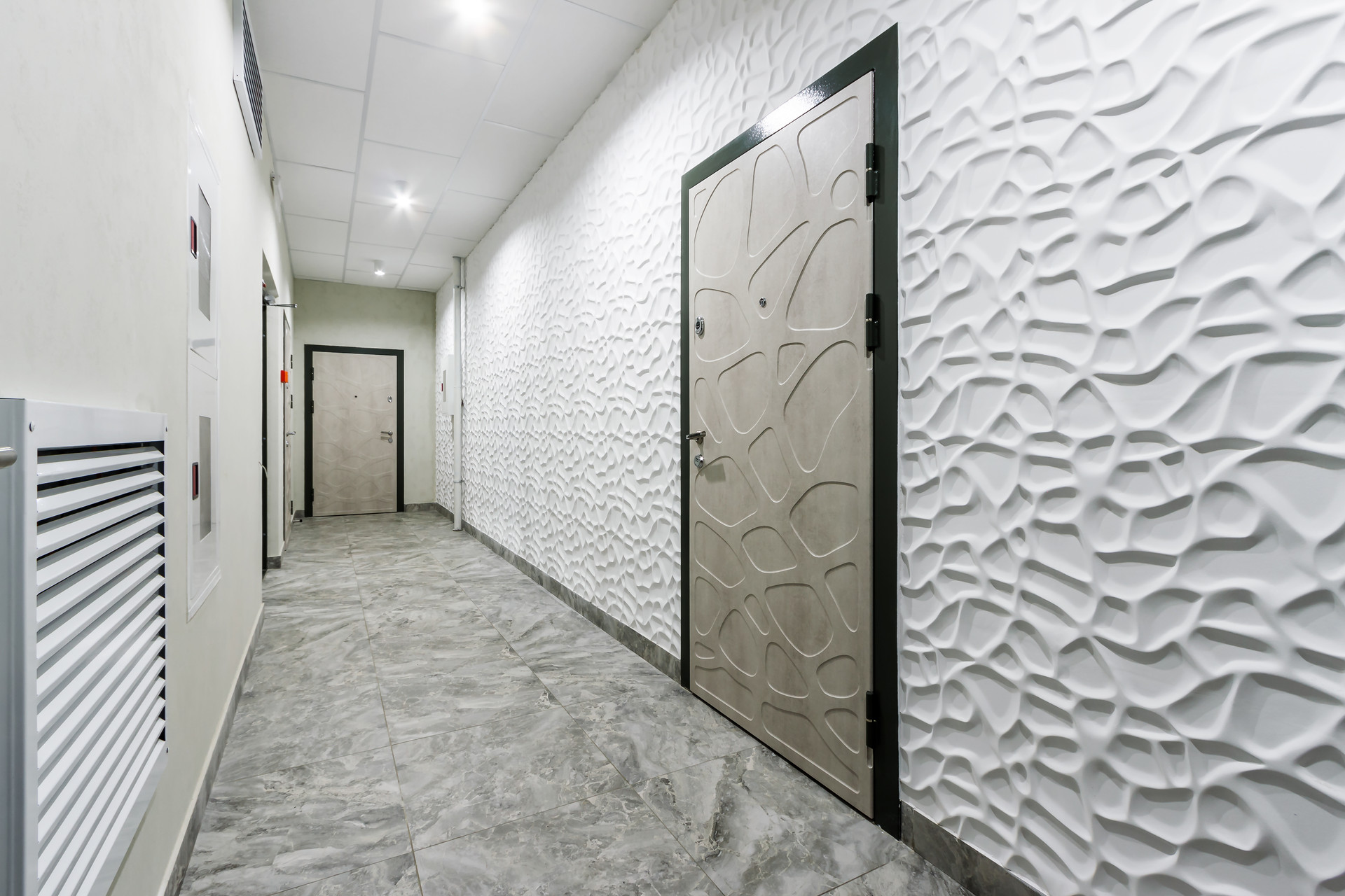 Дом реализован по принципу закрытого клуба: инфраструктура только для жильцов (выставка картин в лобби, колясочная, детская игровая, теплый паркинг). Собственный ландшафтный сад с фонтаном.