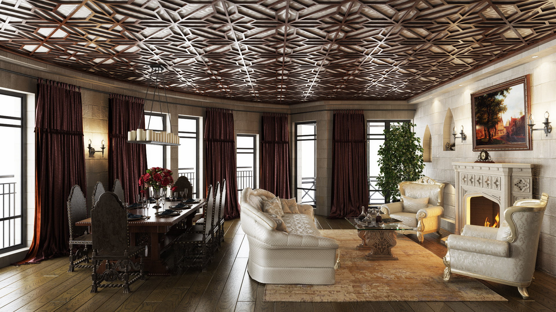 Нескрываемый восторг и восхищение вызывает РОСКОШНАЯ ГОСТИНАЯ более 60 кв. м. Безграничность помещения усиливается обилием света, словно врывающимся сюда через огромные распашные окна в пол с французскими балконами, квадратные или круглые эркеры. Логичным продолжением помещения является теплая просторная лоджия, где можно разместить зимний сад или кабинет.