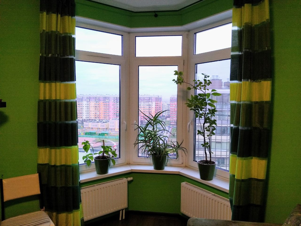 Радиаторы отопления лучевой системы, с терморегуляторами.