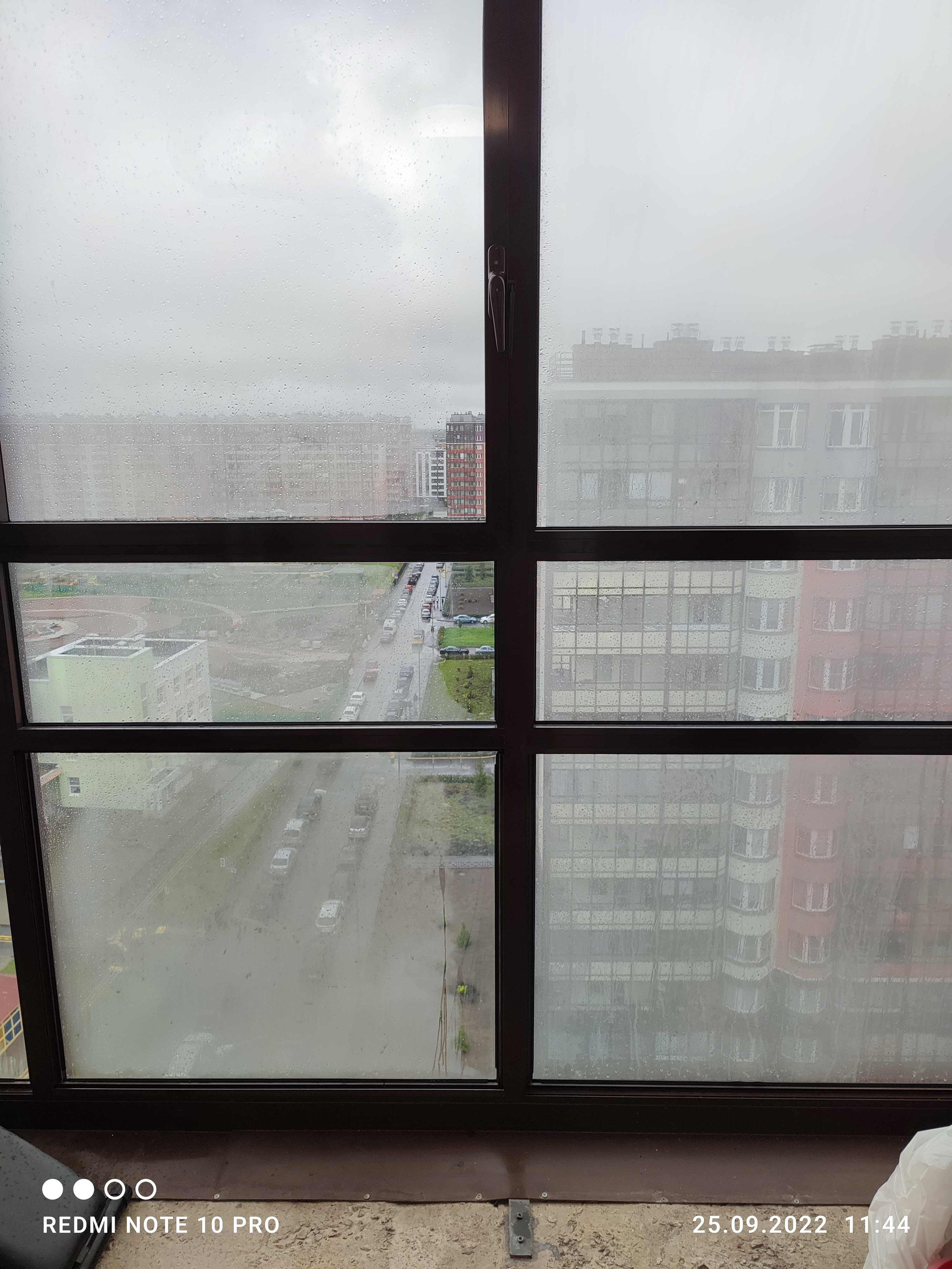 Из окон вид на детский сад, детскую развивающую площадку Монтессори и закатное солнце.