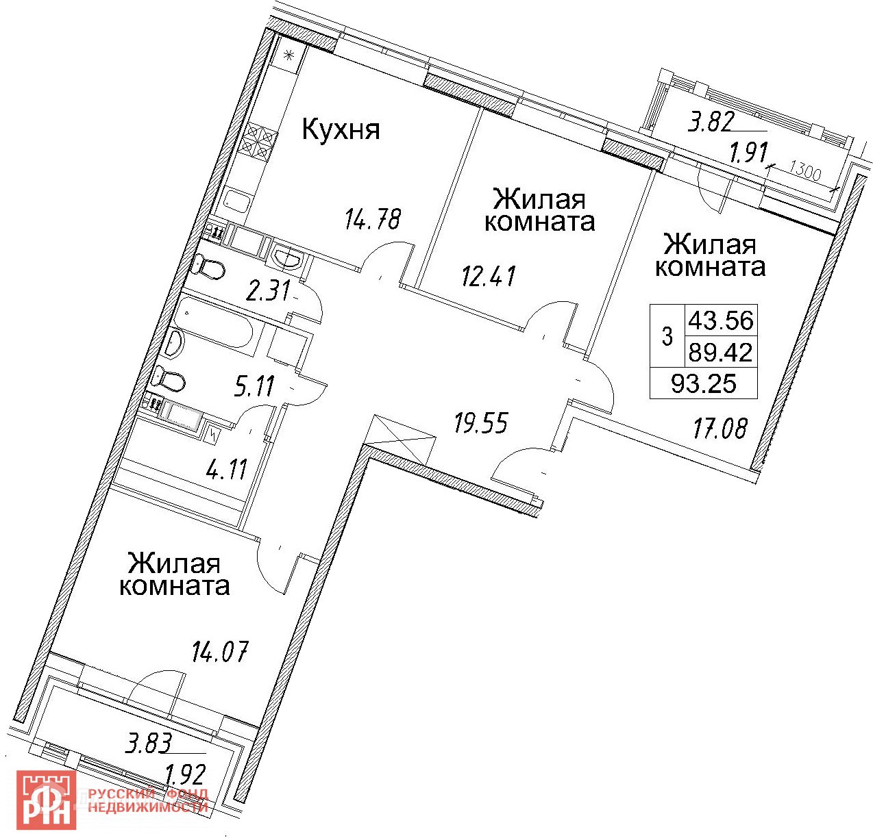 Общая площадь 93.3 м2