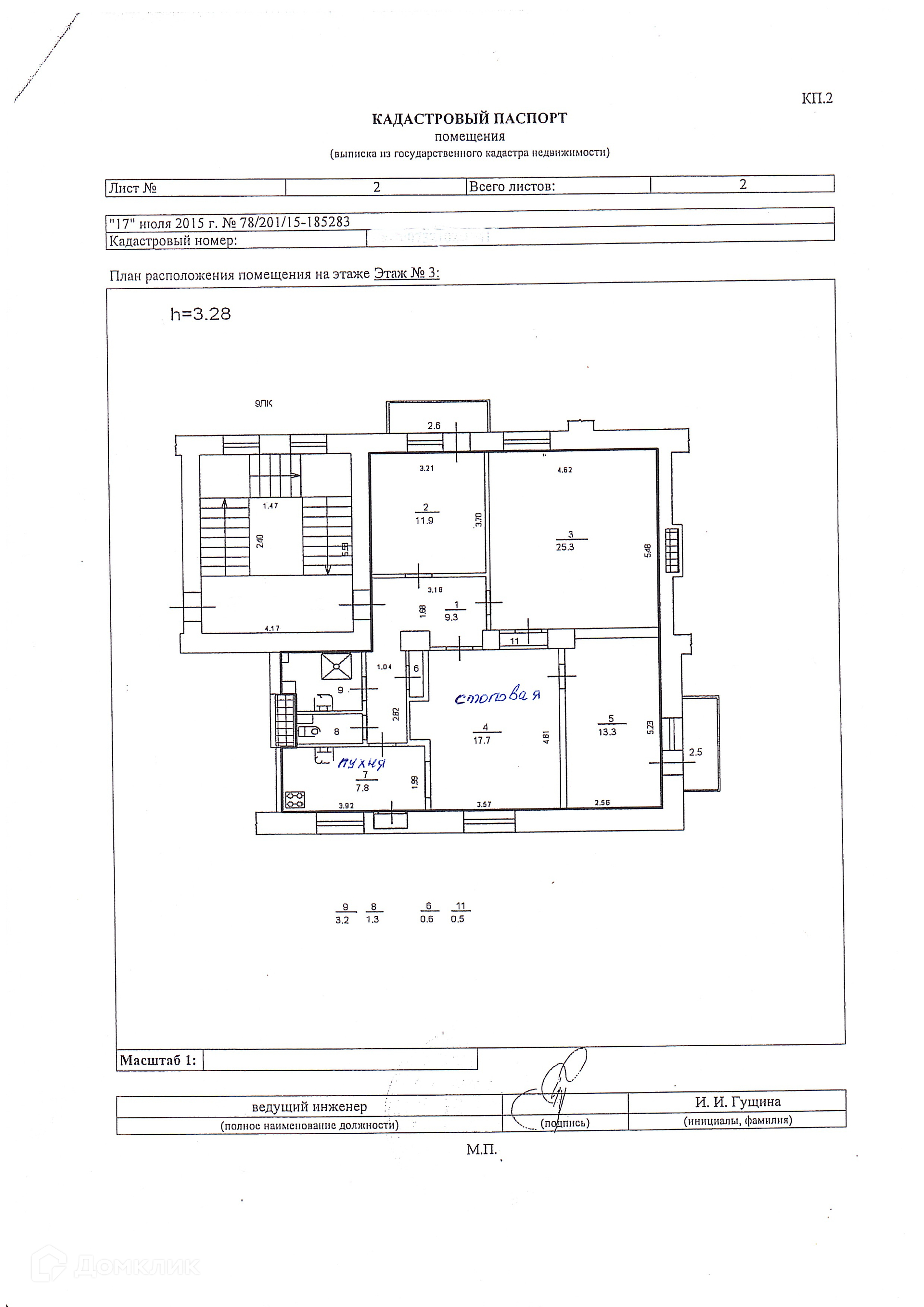 Высота потолков 3.3 м