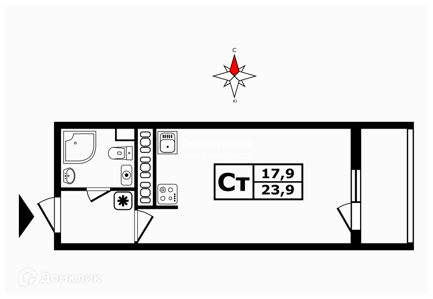 Общая площадь 23.9 м2