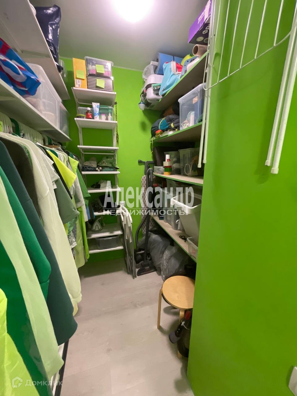 Отделка пола - кафель (кухня, санузел), ламинат (спальня, гардеробная-кладовая)