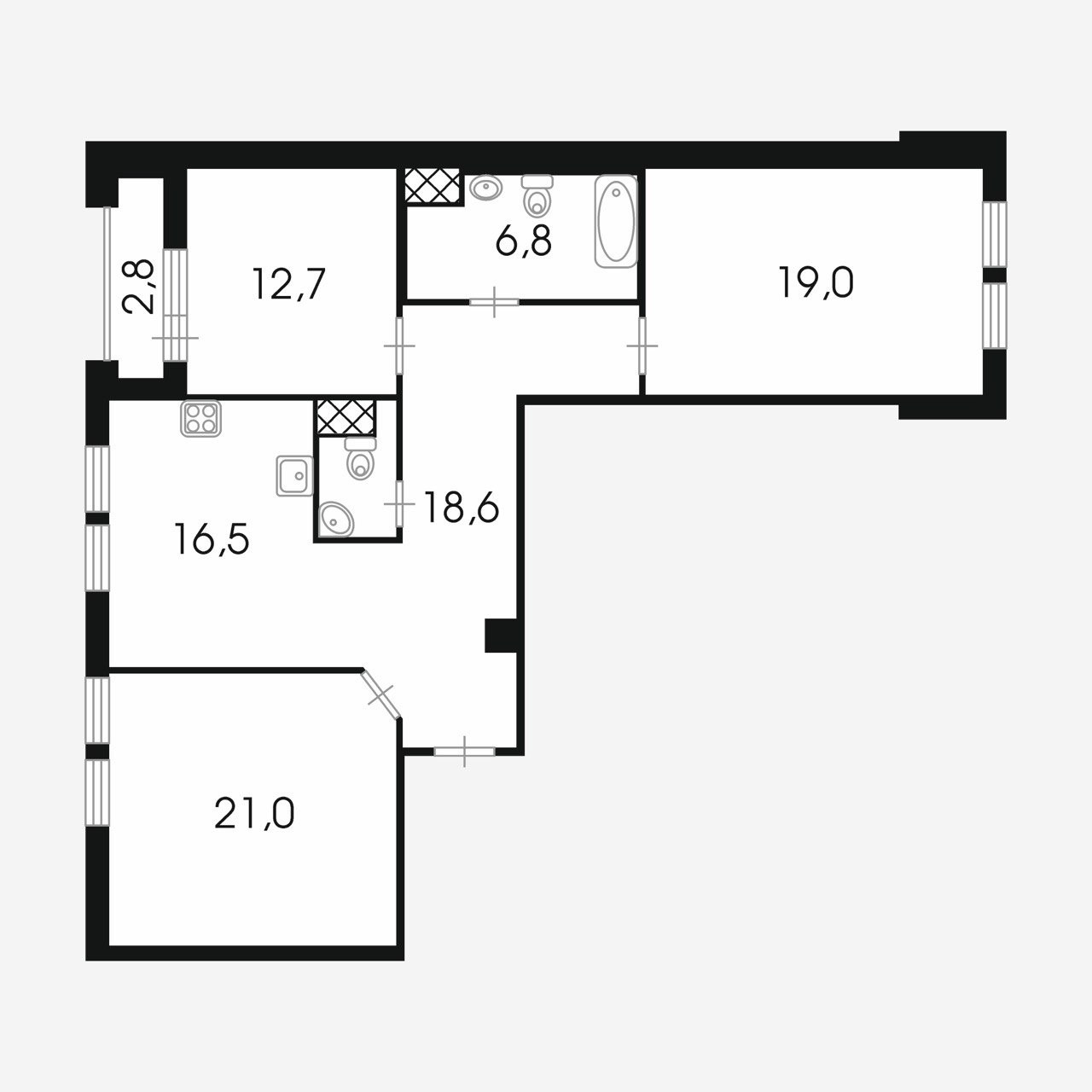 Общая площадь 96.9 м2
