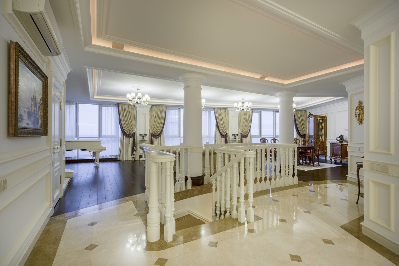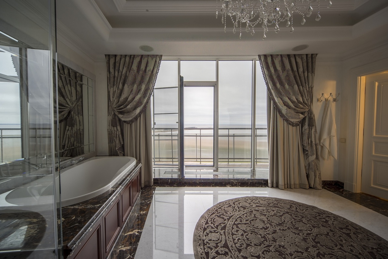 ID: 0712 Предлагается на покупку эксклюзивный двухуровневый Пентхаус с лучшим видом на залив, Лахта-Центр, Морской Вокзал и панораму города, а так же на город - Герой Кронштадт и его Морской Собор. Этаж: 13-14. Высота потолков 3,13 м. 3 изолированных спальных комнаты Кухня и столовая Видовая гостиная 3 гардеробных комнаты 5 санузлов SPA Зона, Хамам и Финская сауна Подземный паркинг Ремонт 2019 год 3 балкона и 1 терраса, общей площадью 75,6 метров с отделкой. Планировка: На первом этаже размещены: прихожая с декорированными вставками (использование натуральных материалов), спальня, комната для гостей, красивая лестница, несколько эксклюзивных санузлов и санузел бизнес-класса с сусальным золотом. На втором этаже расположены: мастер спальня, со своей гардеробной и ванной комнатой, сауна, просторная кухня-гостиная, и спальня со всеми удобствами. На каждом из этажей есть возможность выхода на открытые террасы, которые расположены по всему периметру пентхауса. На втором этаже, на террасе оборудована большая лаунж зона. Главной особенностью пентхауса, безусловно, является его видовые характеристики: окна в пол и расположение практически на все стороны света, дают по-настоящему незабываемый вид. Пространство квартиры украшают красивая итальянская мебель, и натуральные материалы, примененные в отделке интерьера: мрамор, оникс. Мебель привезена из Европейских стран, выполнена на заказ и отделана вручную. Все оборудование от известных премиальных итальянских и европейских брендов. Общая площадь пентхауса 340.1 кв. м. Пентхаус оборудован системами вентиляции и кондиционирования, многоступенчатой очистки воды, бойлерами. Электрическая мощность увеличена. Территория жилого комплекса огорожена и охраняется круглосуточно, ведется видео наблюдение. Два парковочных места в подземном паркинге. Показ по договорённости.
