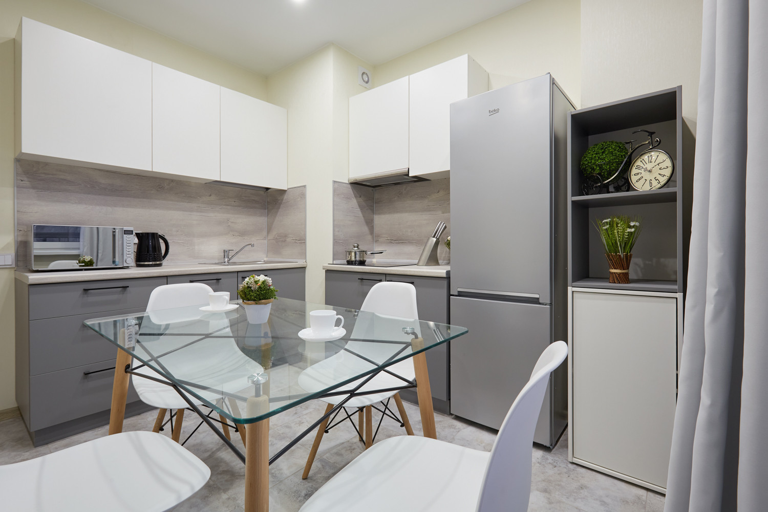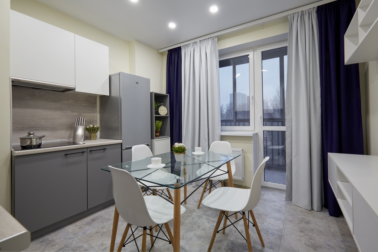 В стоимость апартамента входит кухонный гарнитур со встроенной техникой: стиральная и посудомоечная машина, вытяжка, холодильник, варочная панель и духовой шкаф; обстановка спальни помимо мебели включает телевизор, постельное белье и т.д.; полностью оборудованный санузел.