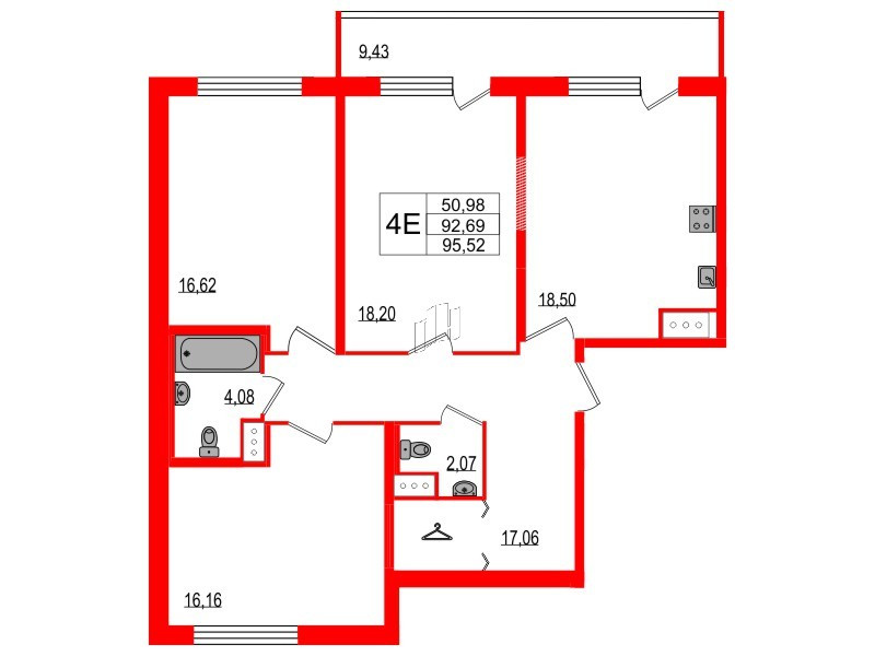 Общая площадь 92.69 м2