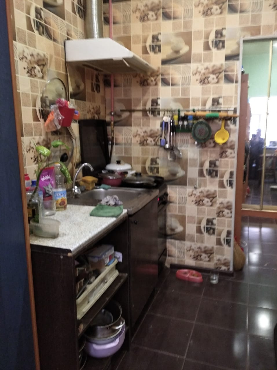 в прихожей, кухне санузле на полу плитка, в комнате ламинат. Окна и вход - двор.