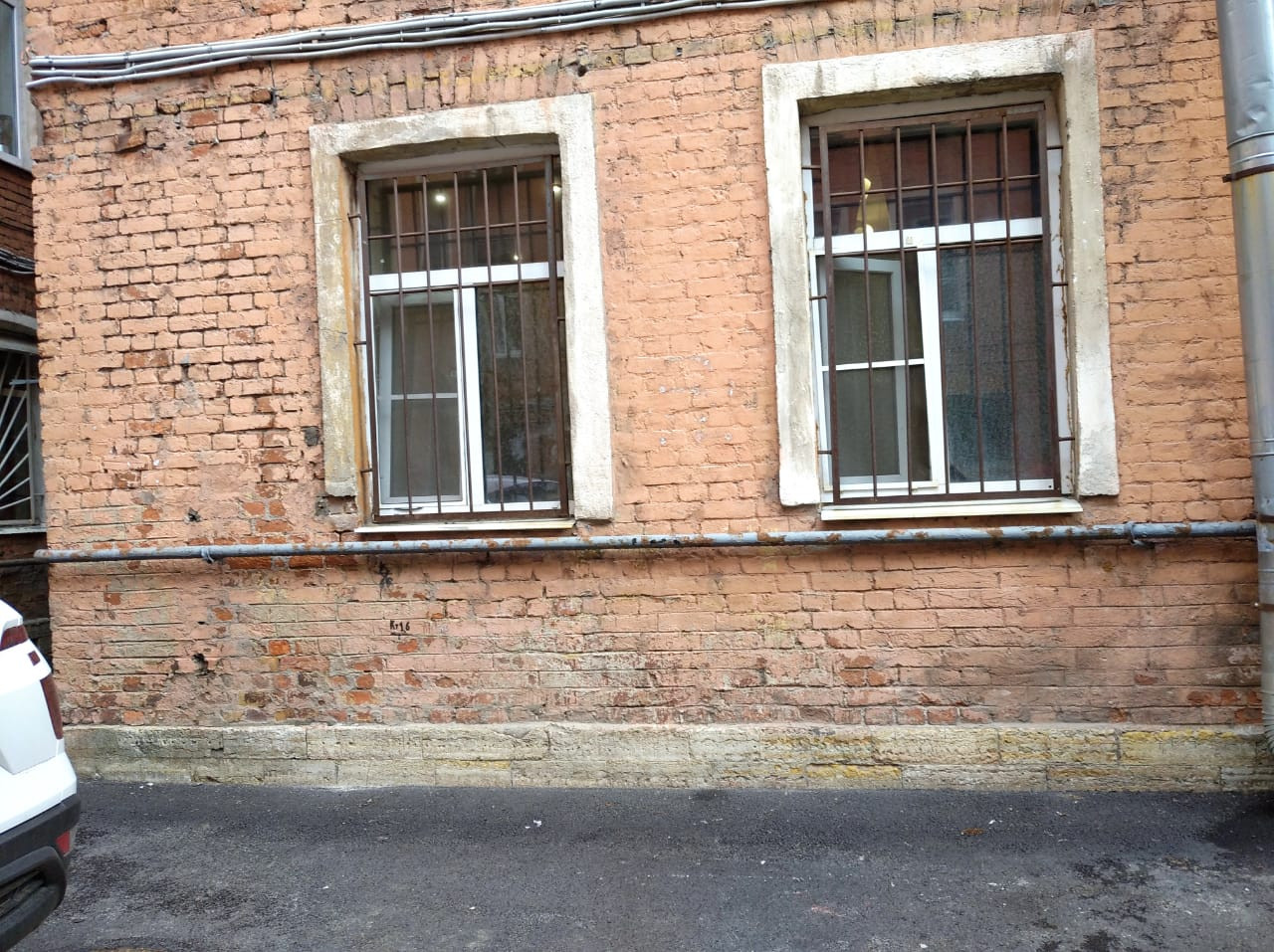 На окнах решетки. от земли до окон  высота  1 метр.
