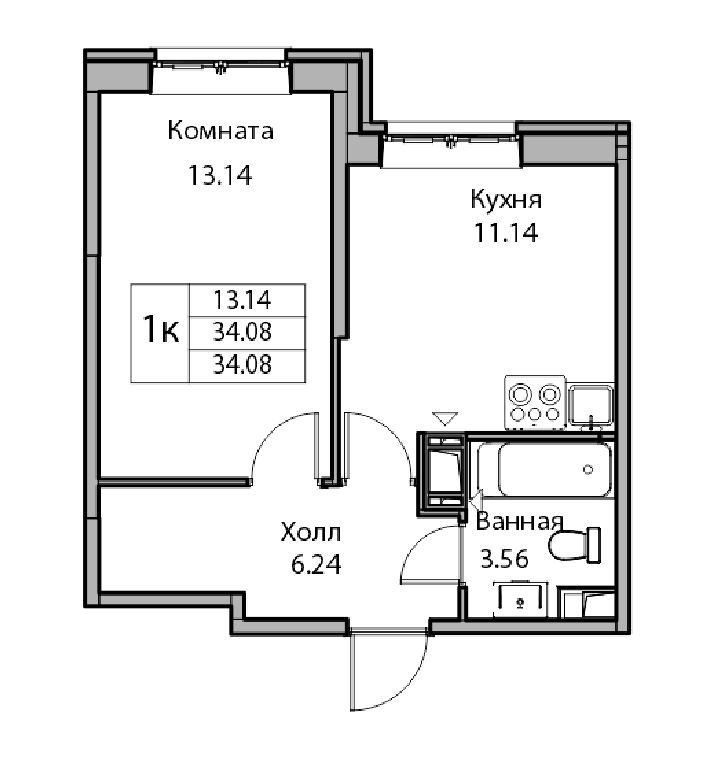Квартира находится по адресу: СПб, Ивинская улица, 19к2 (3 корпус, 6 очереди ЖК Юнтолово) Квартира расположена на 3 этаже, площадь 34,08 м2 (без балкона), (кухня 11,14 м2, комната 13,14м2
