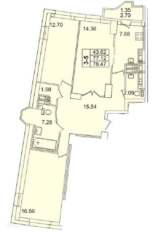 Общая площадь 78.5 м2