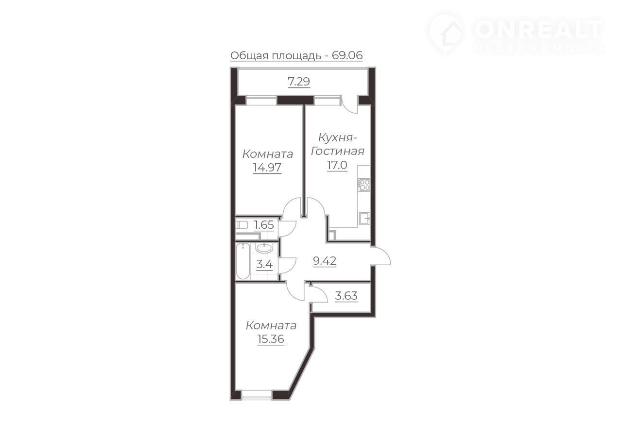 Общая площадь 69.1 м2