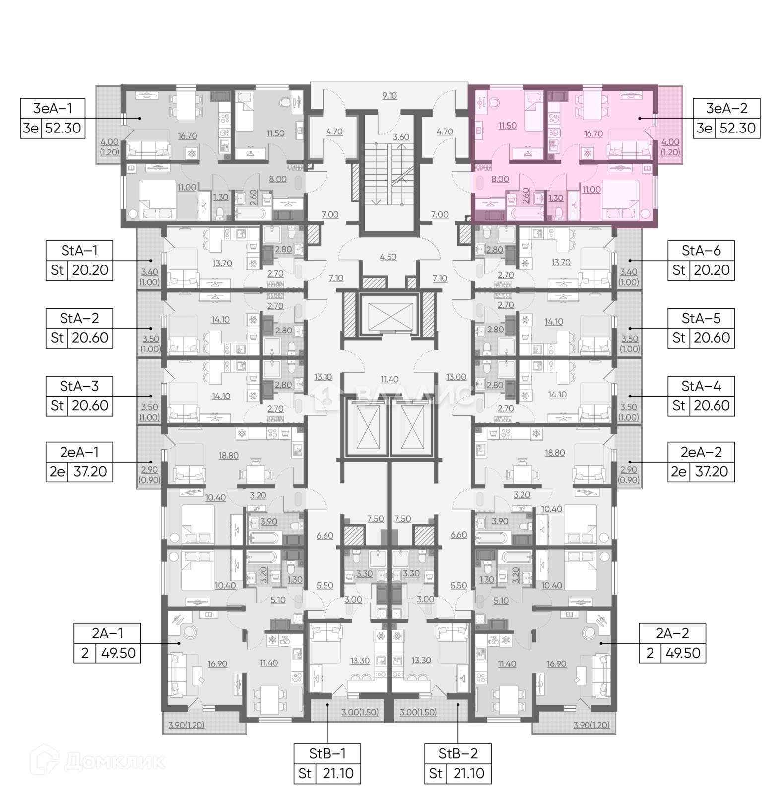 Общая площадь 52 м2