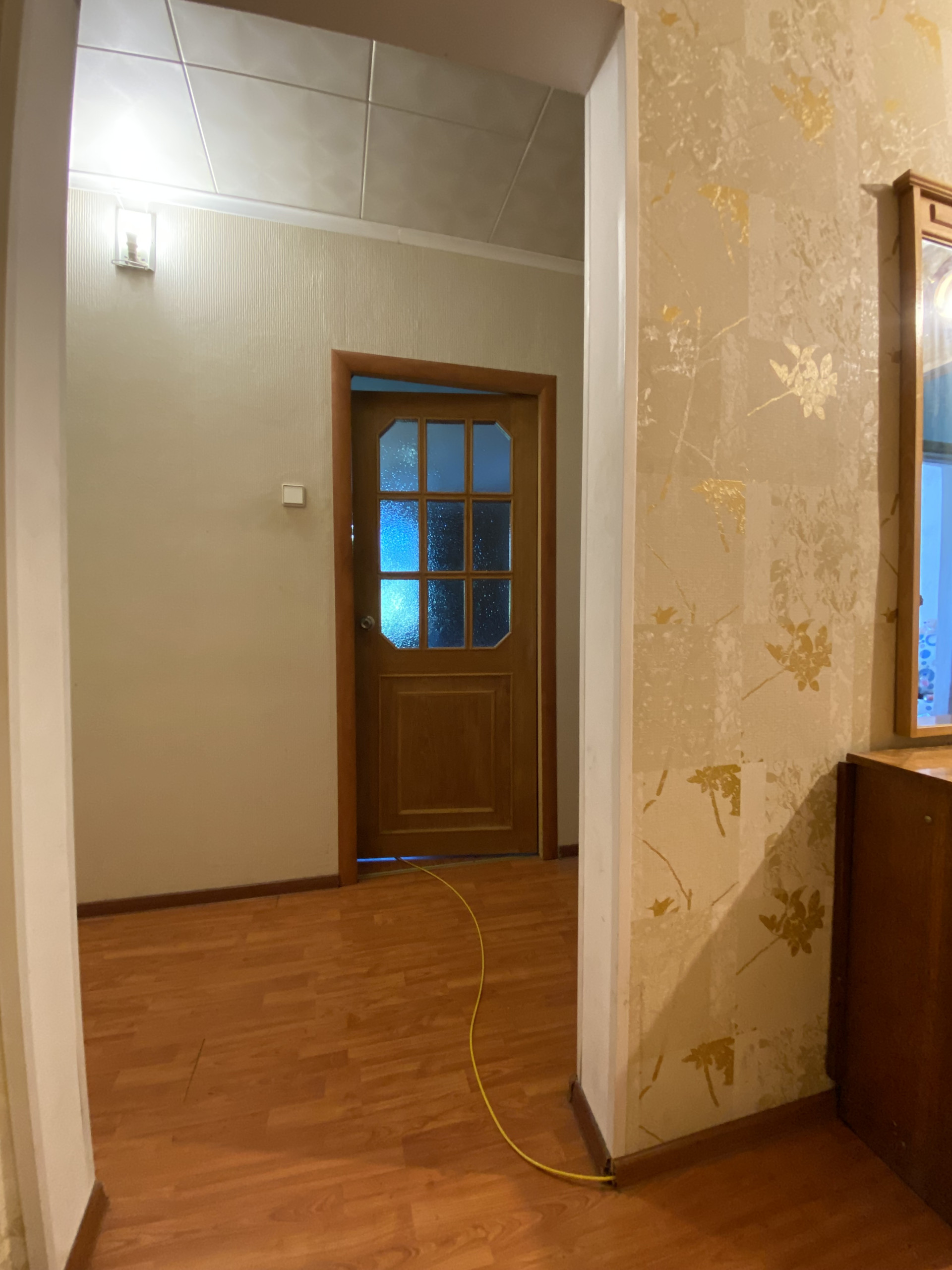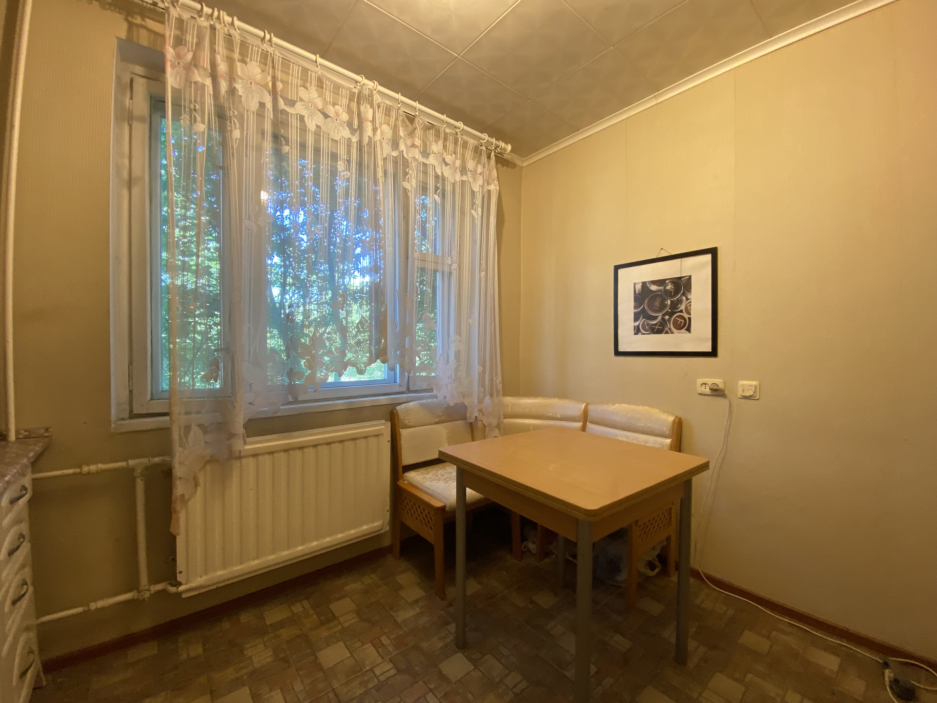 Из важного: на кухне теплый пол в рабочем состоянии, уложена хорошая плитка, которую не нужно менять. В ванной и в туалете плитка тоже в хорошем состоянии. Стеклопакет установлен в одной комнате, в других комнатах деревянные рамы.