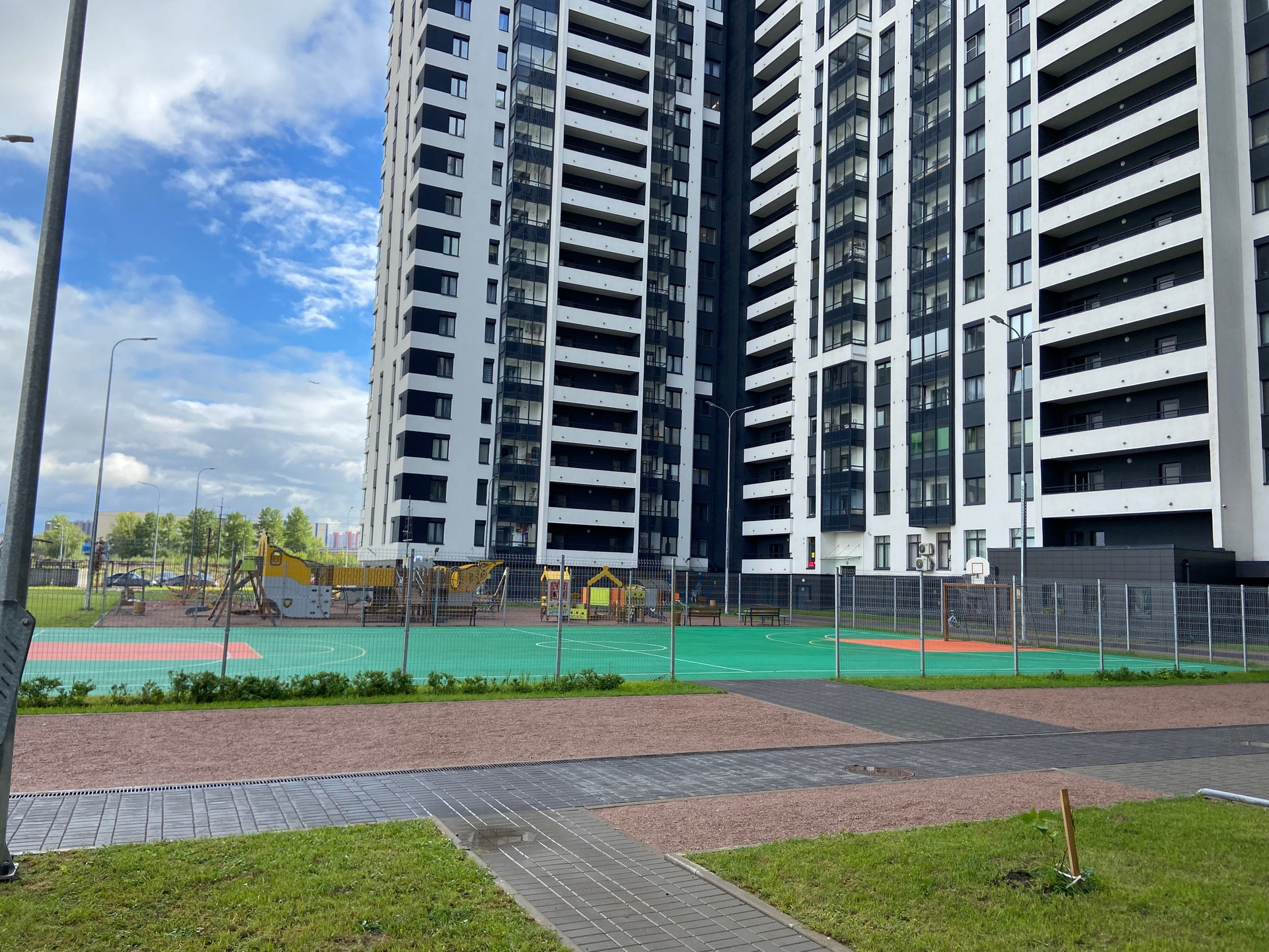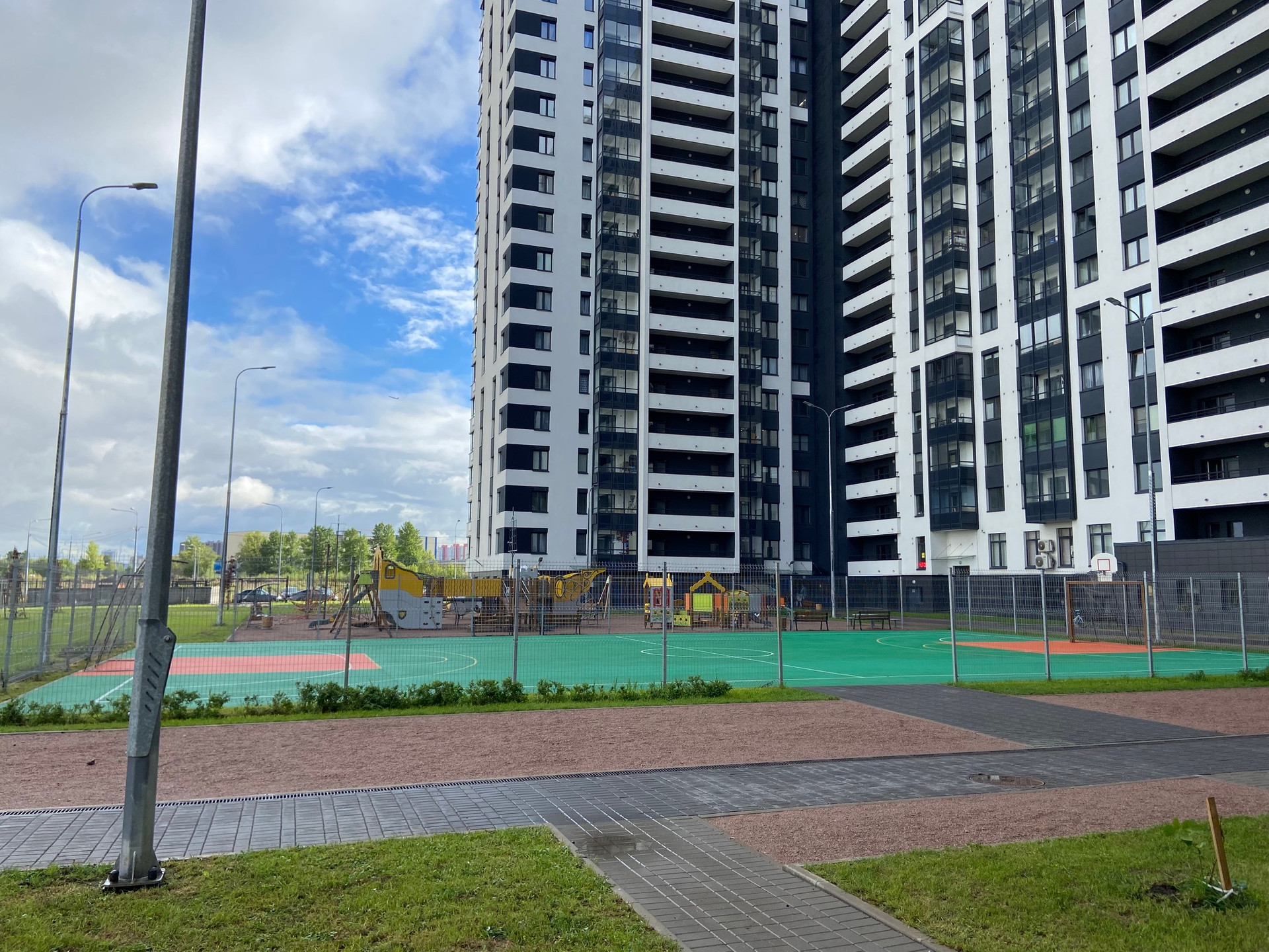 На территории созданы благоустроенные игровые площадки с зонами отдыха и пешеходными дрожками, плитка с антискользящим покрытием освещение, зеленые аллеи и цветники, двор без машин. Есть подземная и надземная парковки. Предусмотрены помещения для консьержа и охраны, колясочные. В ЖК установлены высокоскоростные лифты бесшумного типа.