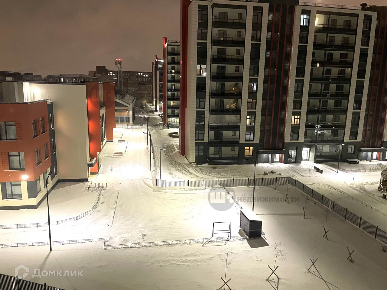 Благоустроенный двор с детскими и спортивными площадками, а также детский сад на 200 мест.