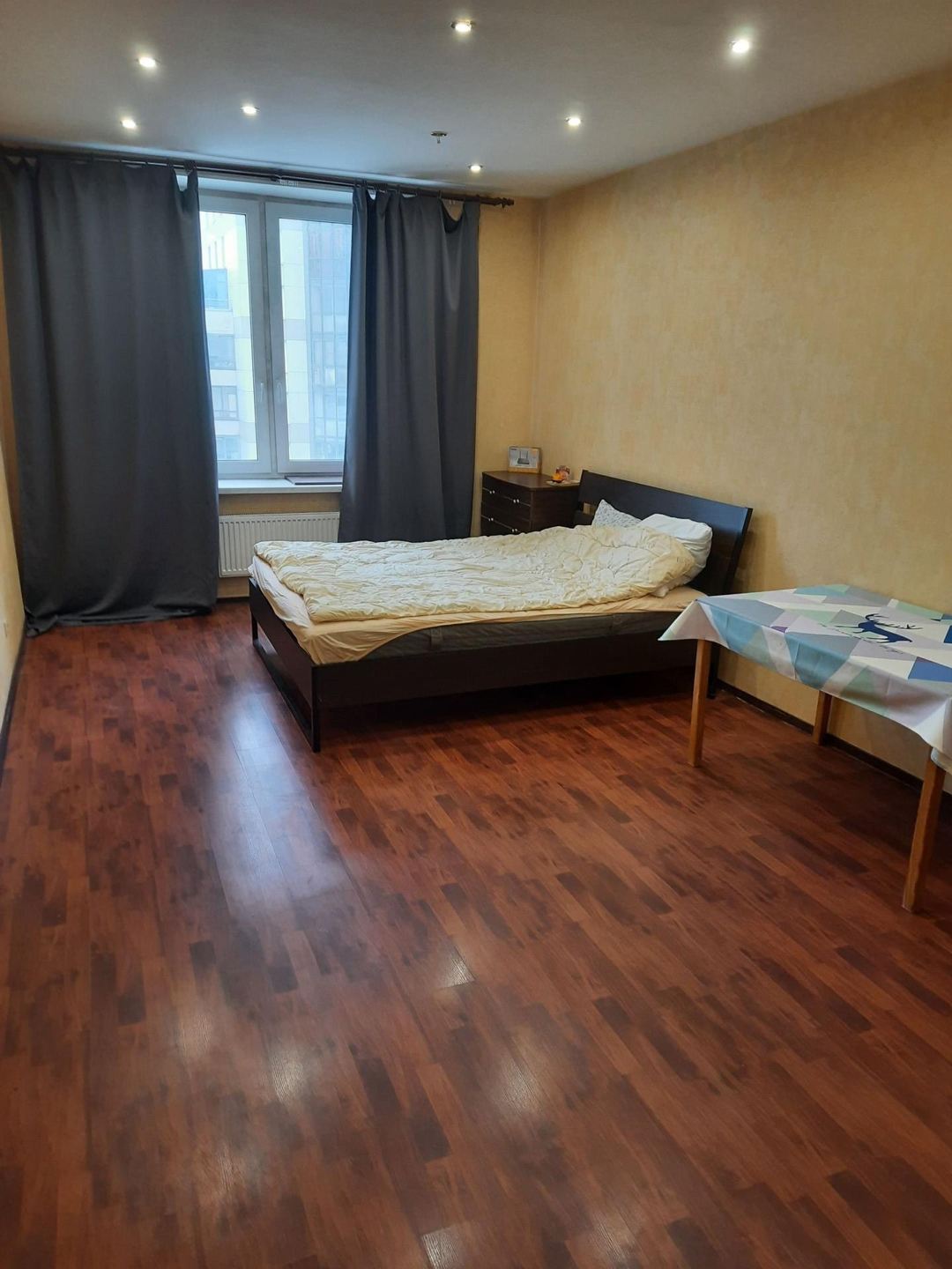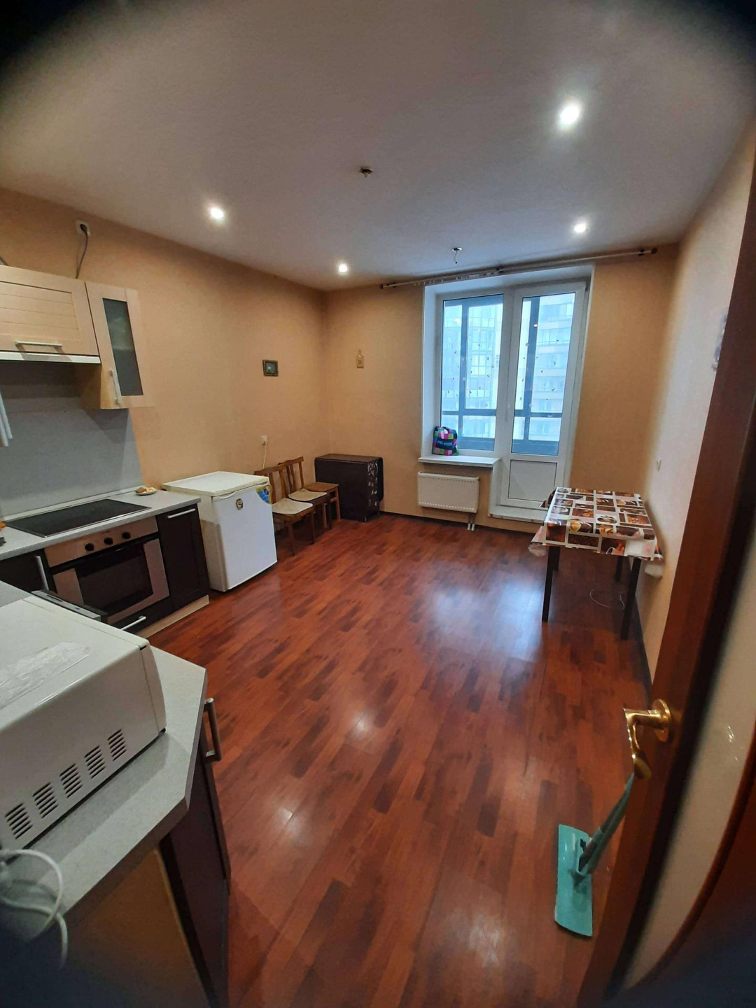 квартира с ремонтом,  кухня столовая с выходом на лоджию. с/у совмещённый 8 кв.м. Комната очень просторная 22 кв, есть возможность зонировать..