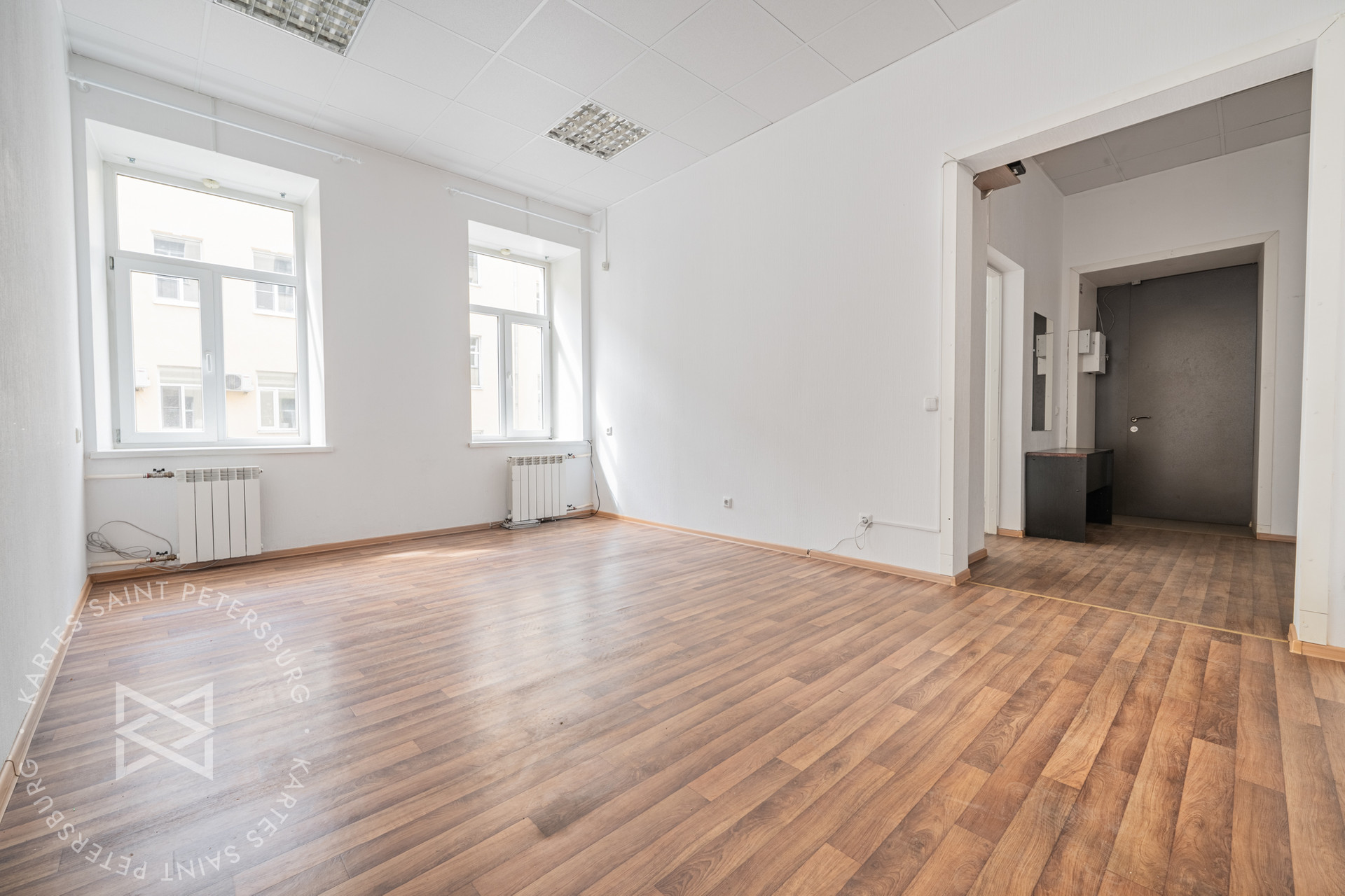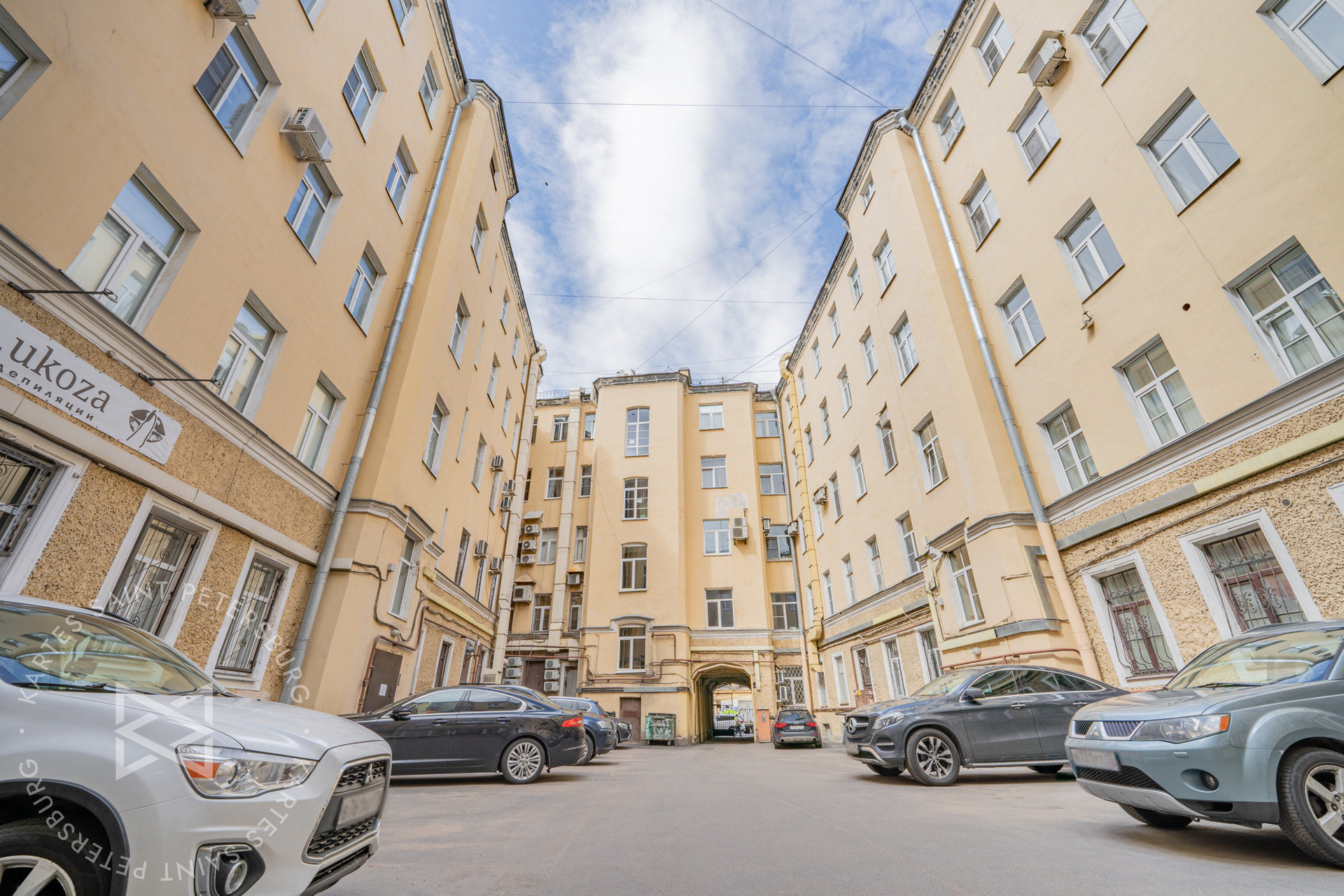С другой стороны окна выходят в тихий закрытый двор, так что никакого шума, характерного для центра города.