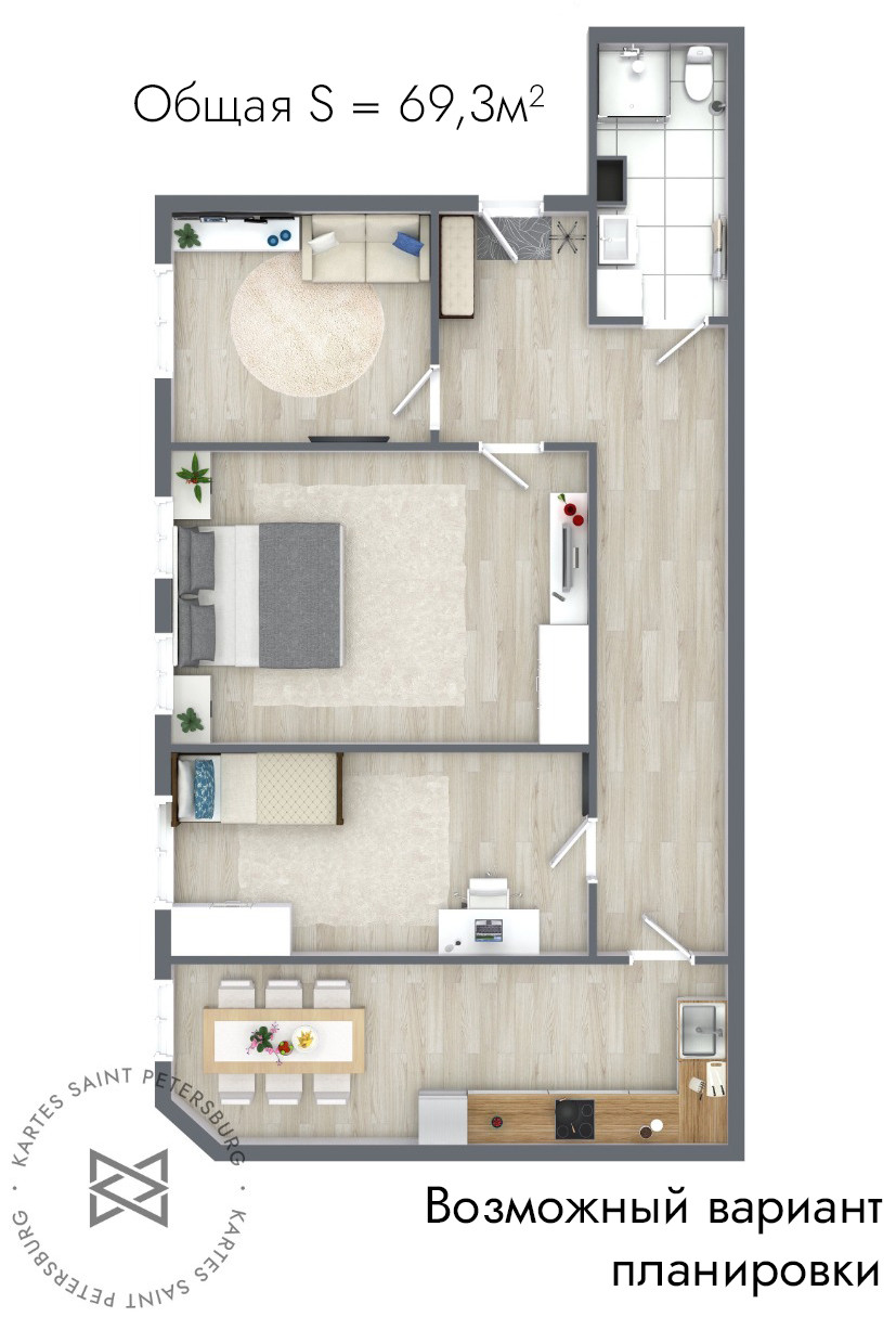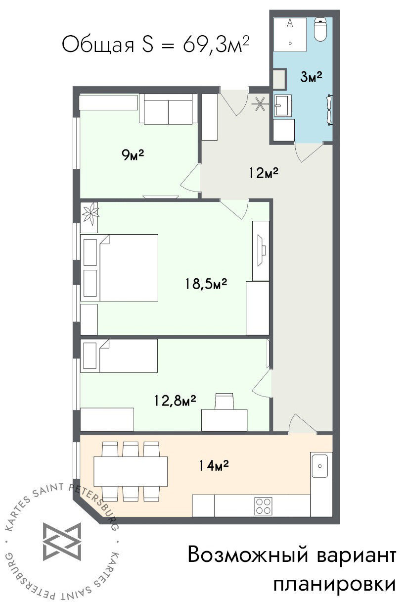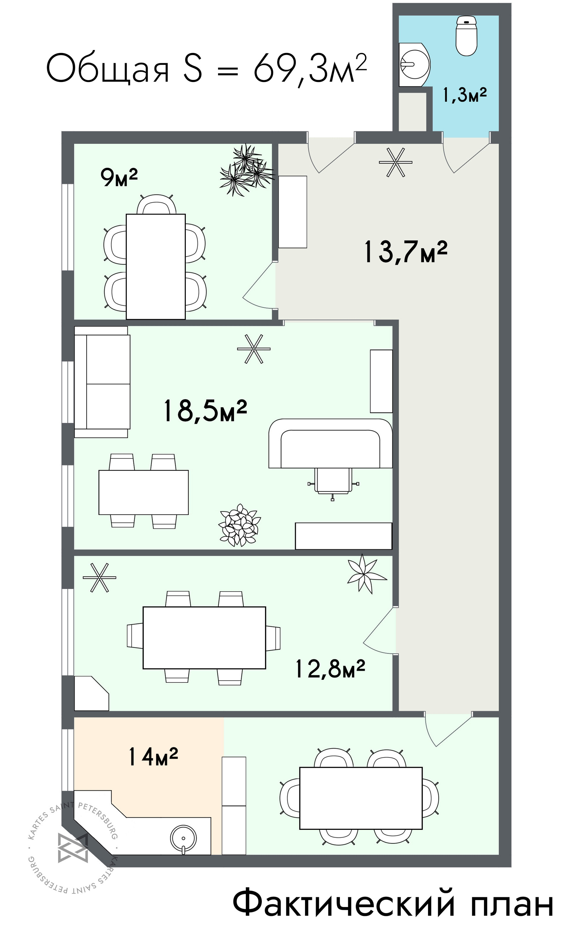 Общая площадь 69.3 м2