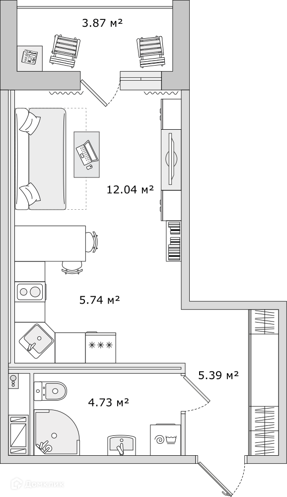 Общая площадь 31.77 м2