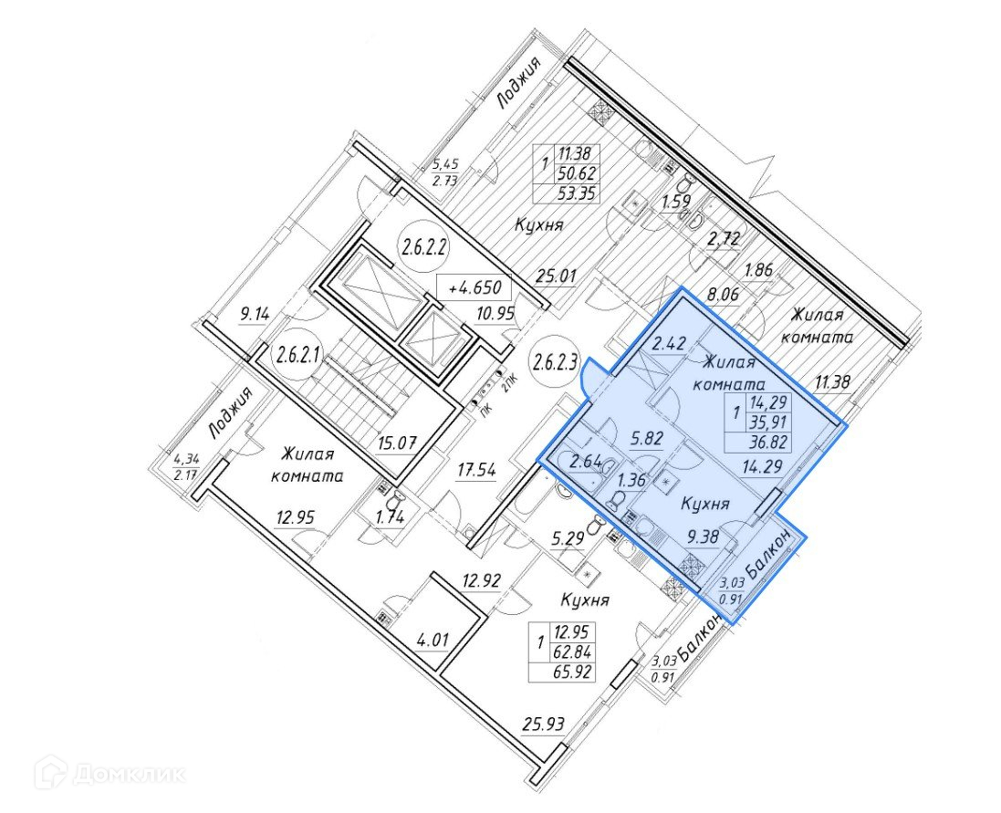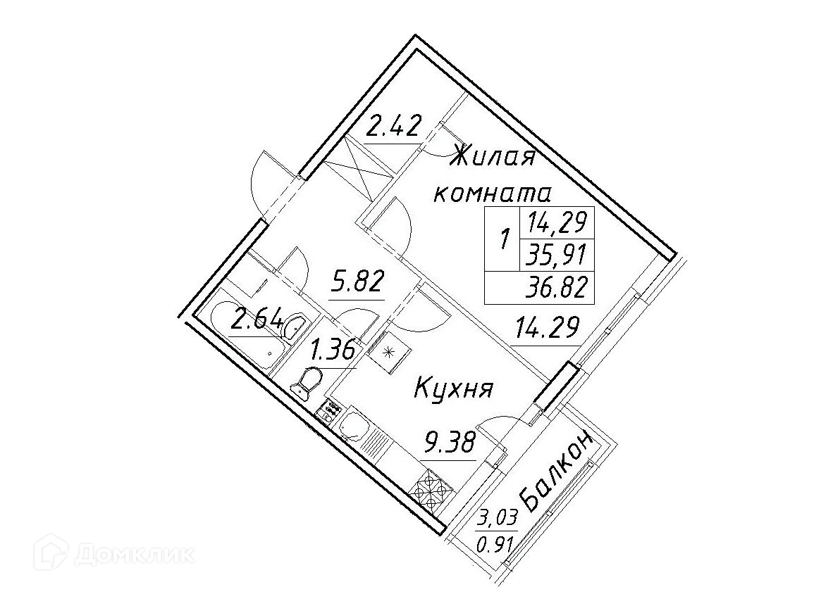Общая площадь 36.82 м2