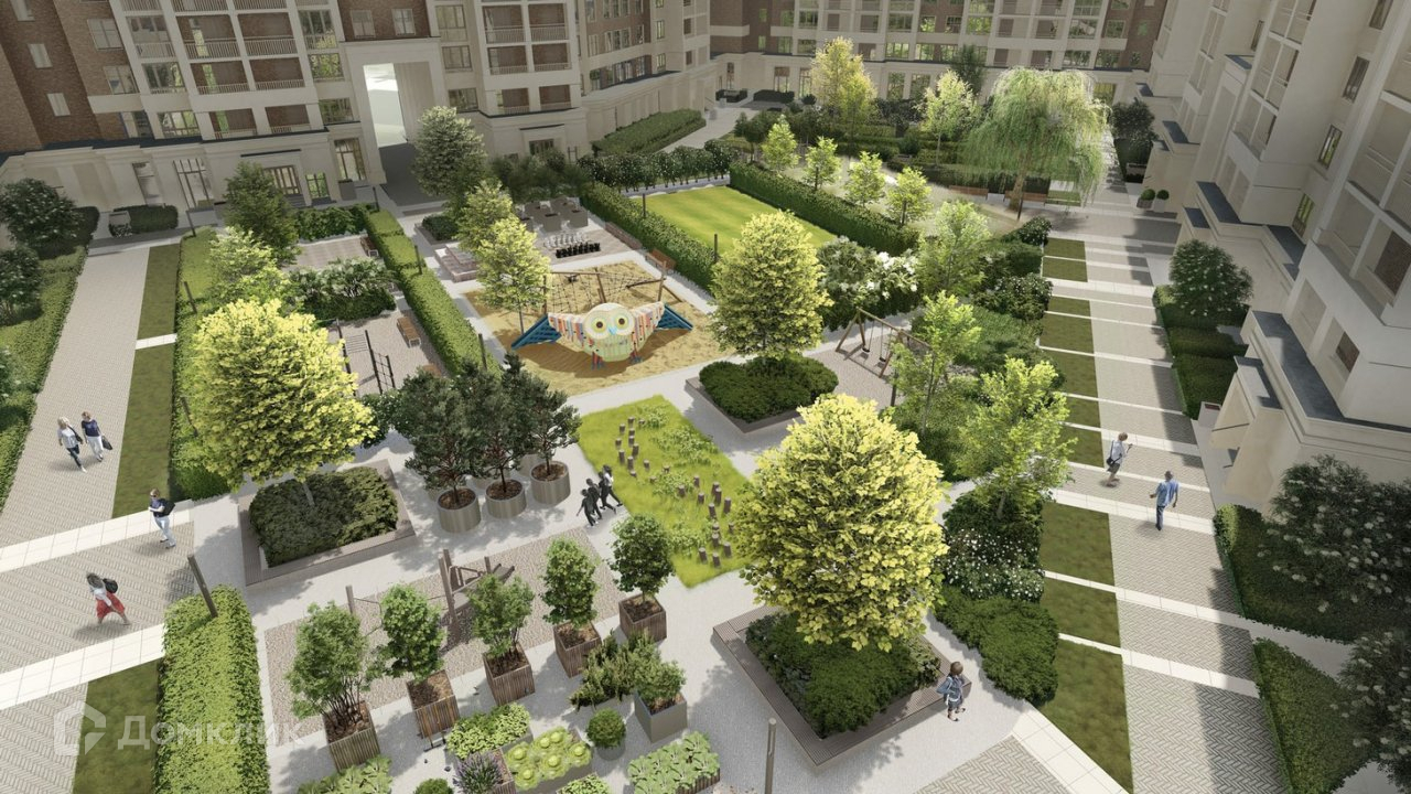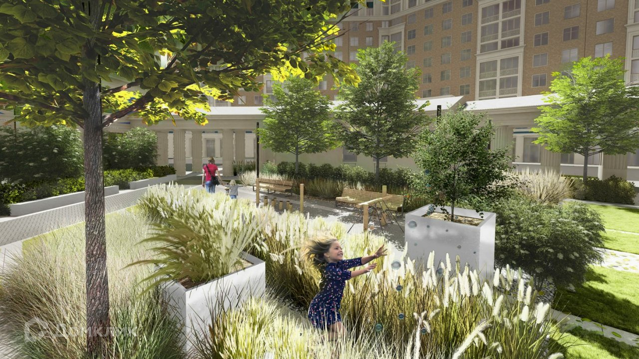 ЗАКРЫТЫЙ ДВОР, свободный от машин, во дворе выполнен ландшафтный дизайн.