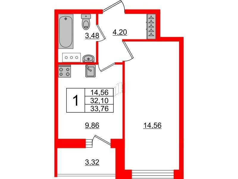 Общая площадь 33.76 м2