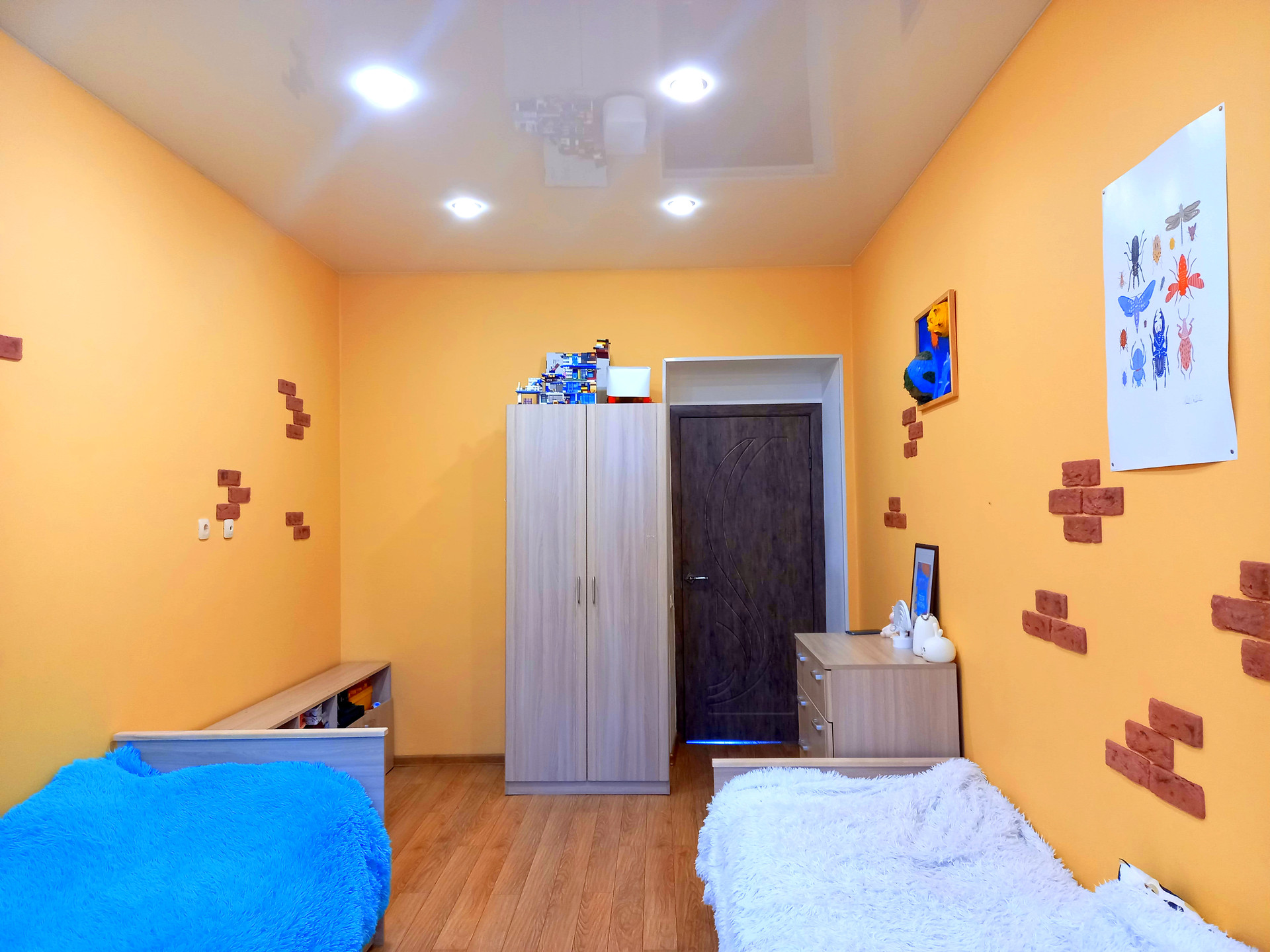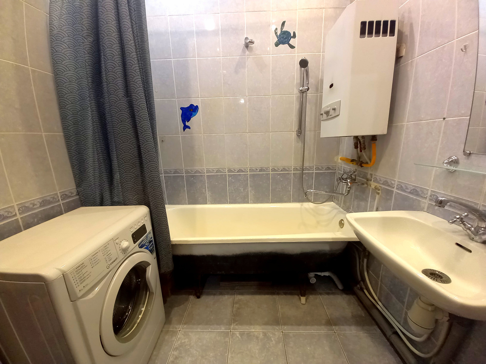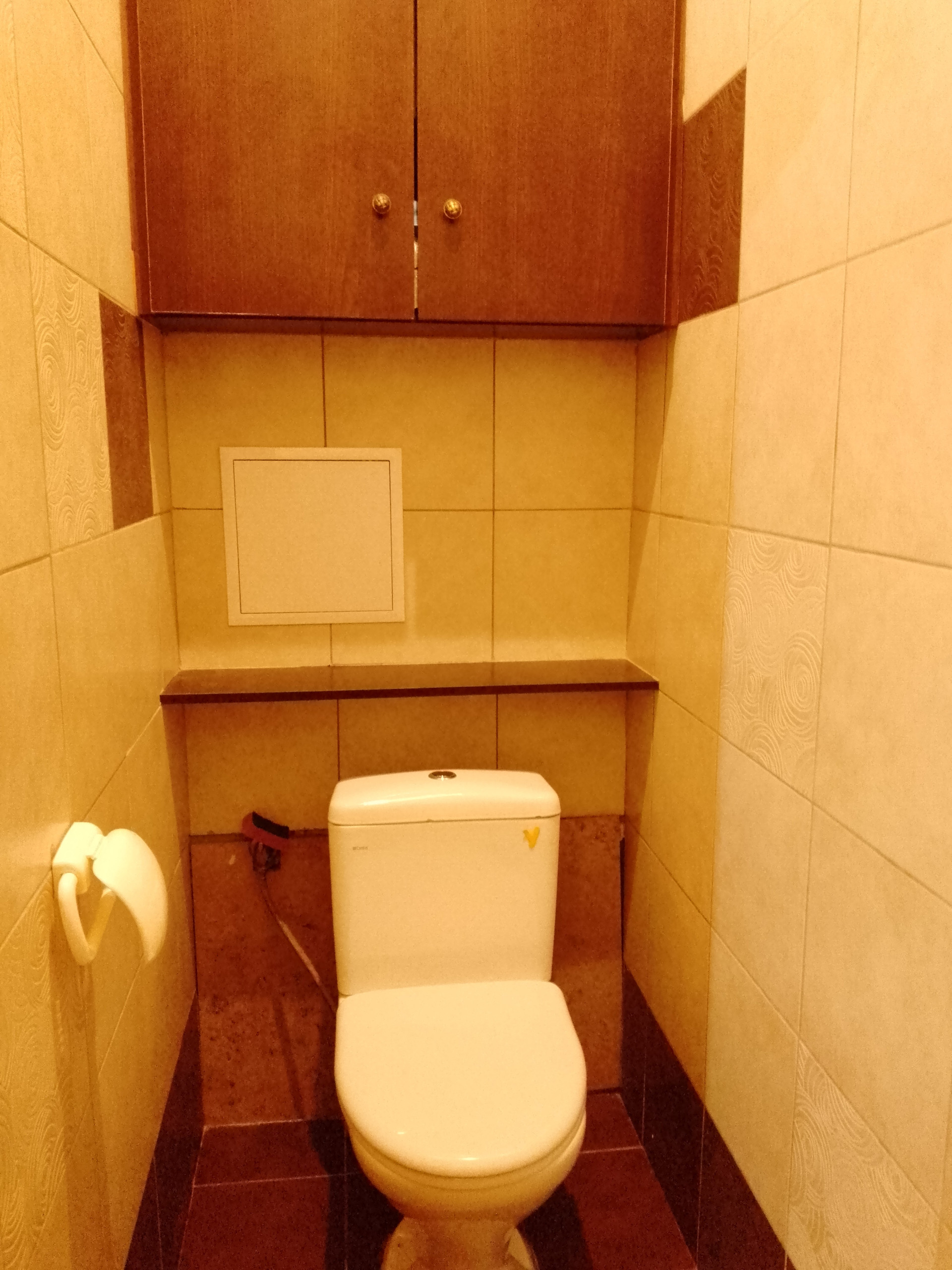 - на стенах в ванной и туалете - плитка, в комнатах - обои;