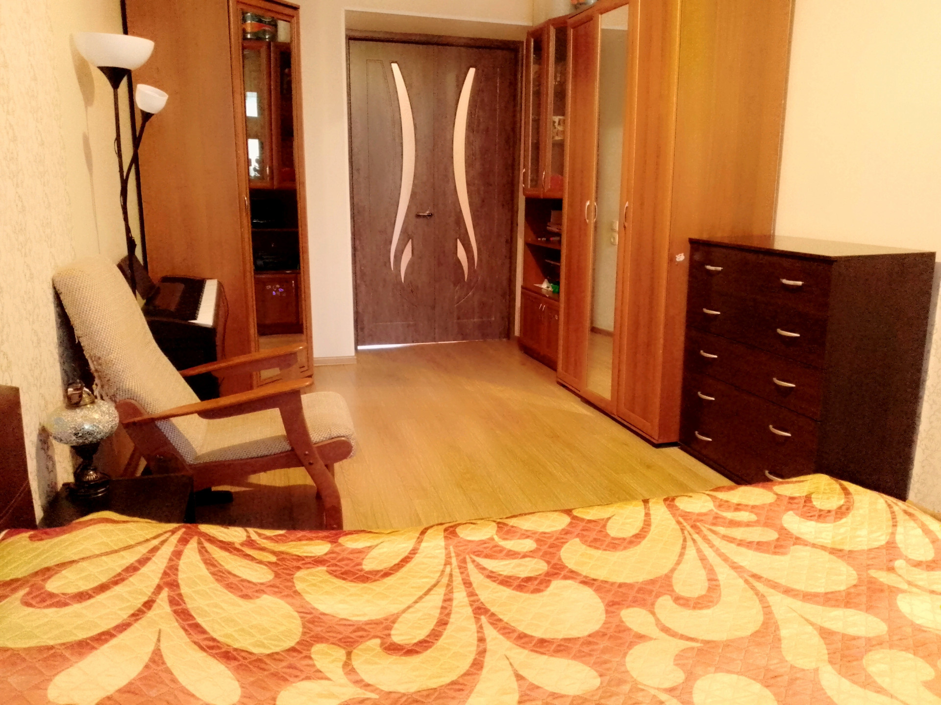 Ванная, туалет, на кухне - на полу плитка, в комнатах ламинат;