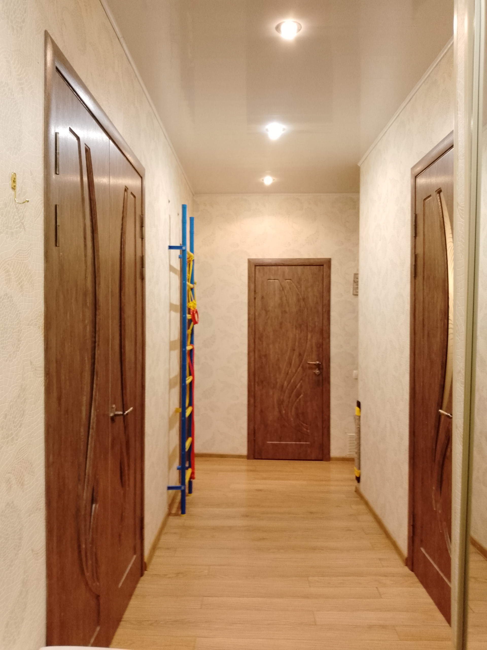 -во всех жилых комнатах натяжные потолки, в коридоре, сан. узлах, кухне - навесные;