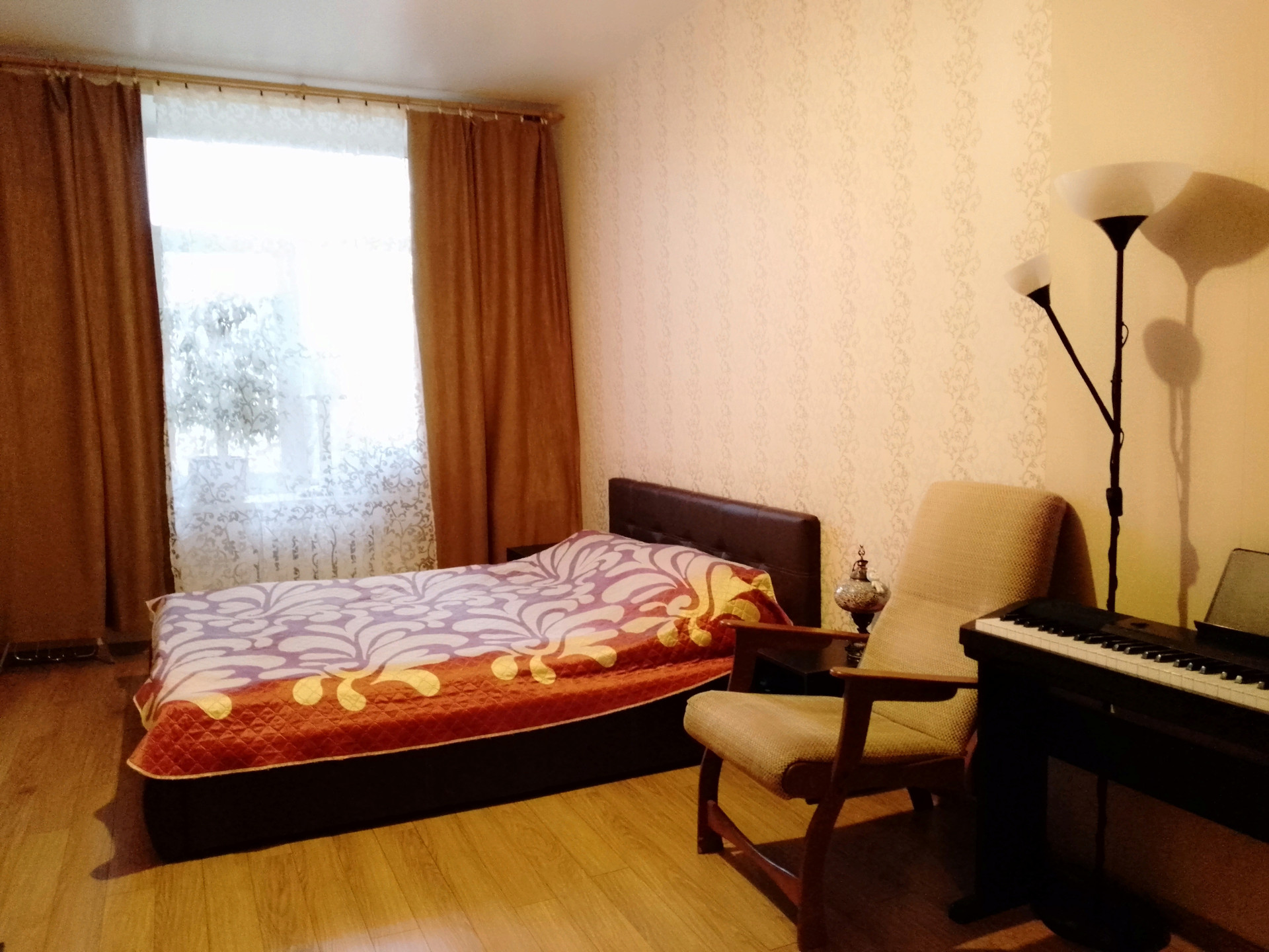 Квартира двухсторонняя, планировка: распашонка, окна выходят на восток и запад, во двор. Двор просторный, зелёный. Детские и спортивные площадки, свободная парковка.