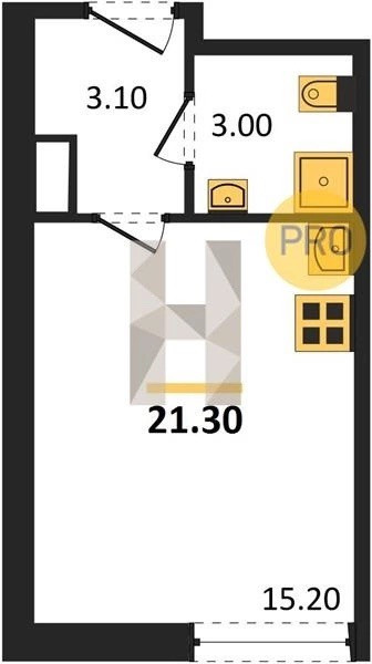 Площадь общая 22,87 м2
