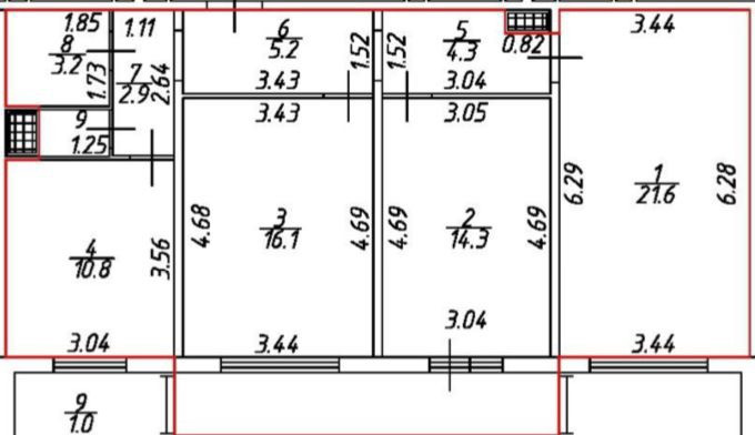 Жилая площадь 52 м2