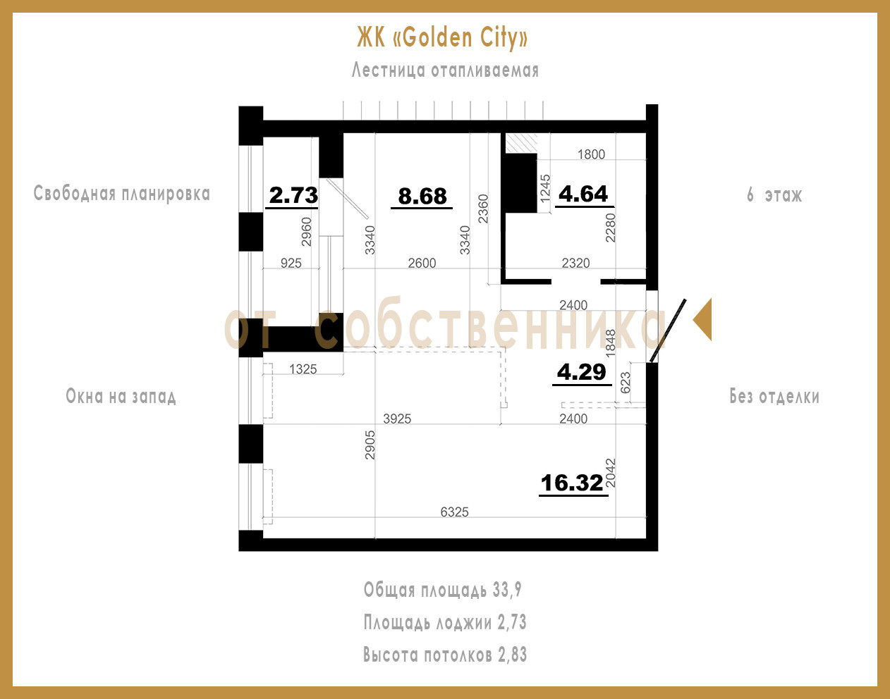 Площадь квартиры без лоджии - 33,9.