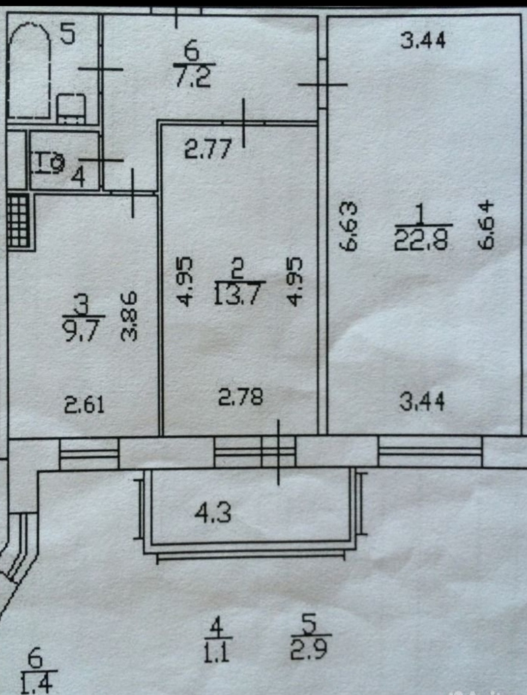 Балкон, лоджия 1 балкон