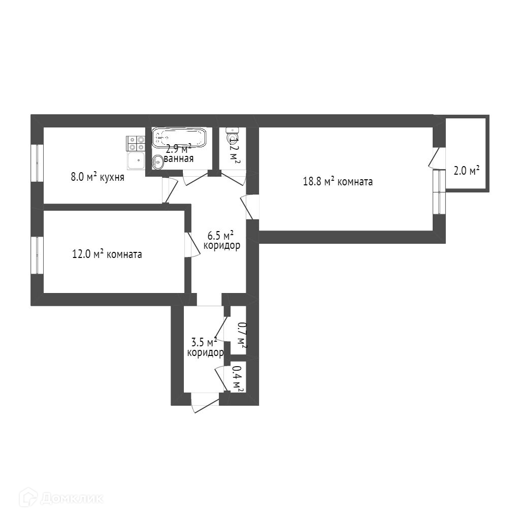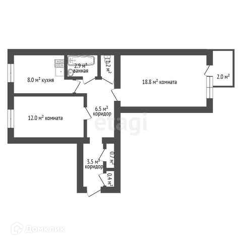 - комнаты 18.8/12.0 кв.м.
