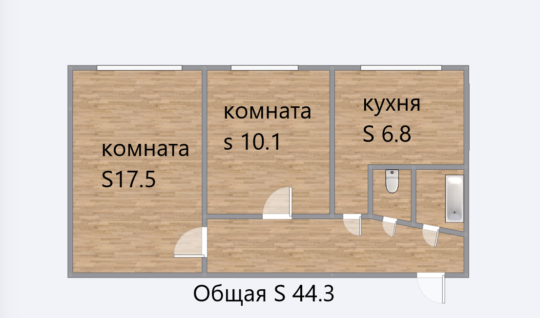 Общая площадь 44.3 м2