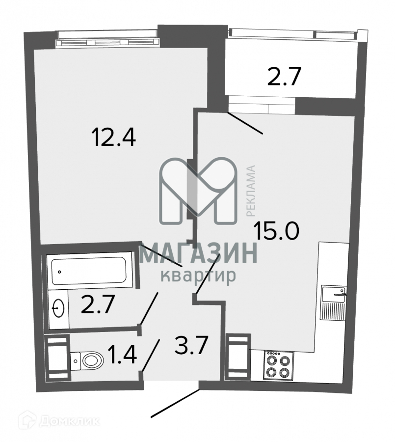 - Кухня - 15 м2 +  + лоджия 2.7 м2