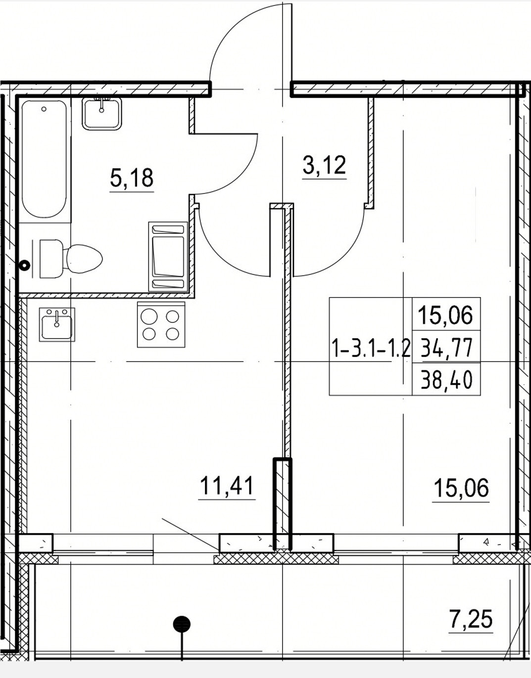Балкон, лоджия 1 балкон